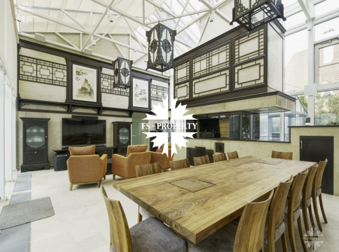 Имеется бассейн, чайный домик с барбекю, гараж на 2 машины с квартирой для персонала, гостевой блок.