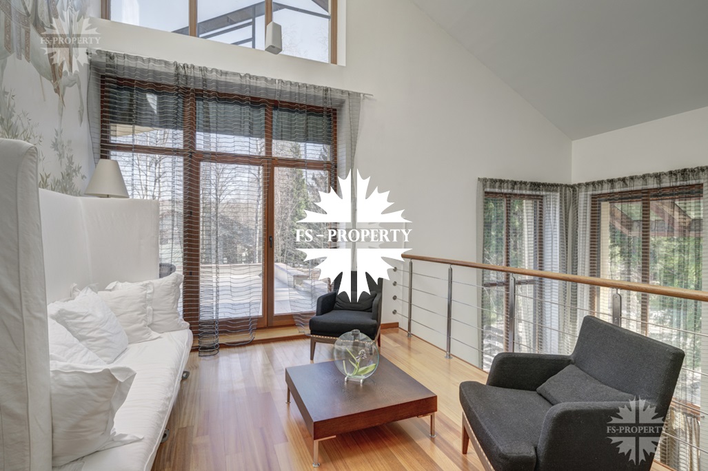 Прекрасное предложение на Рублево-успенском шоссе. Продается стильный 3-х уровневый коттедж на благоустроенном лесном участке 34 сотки.