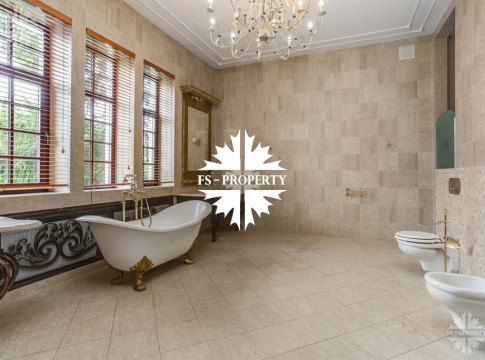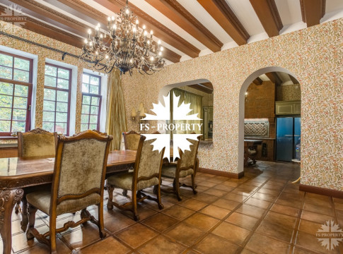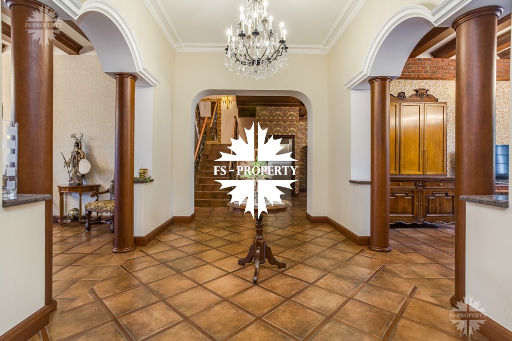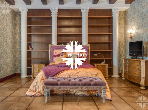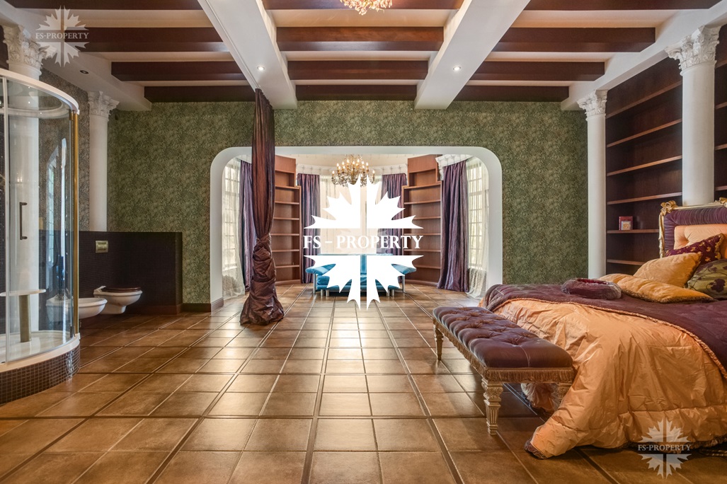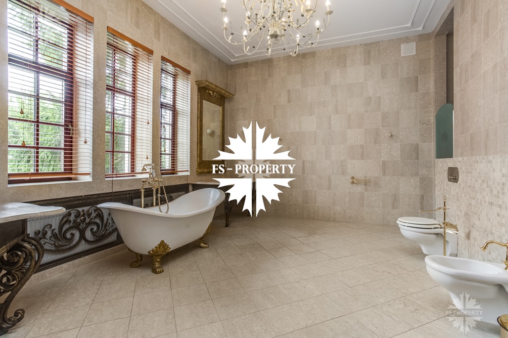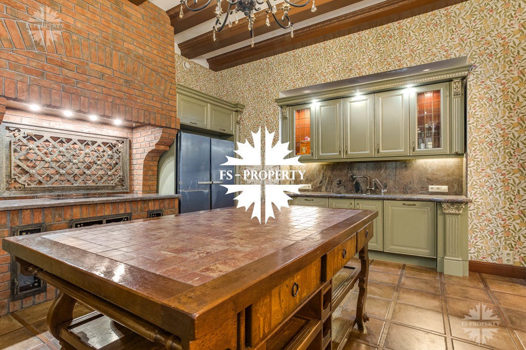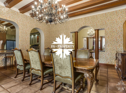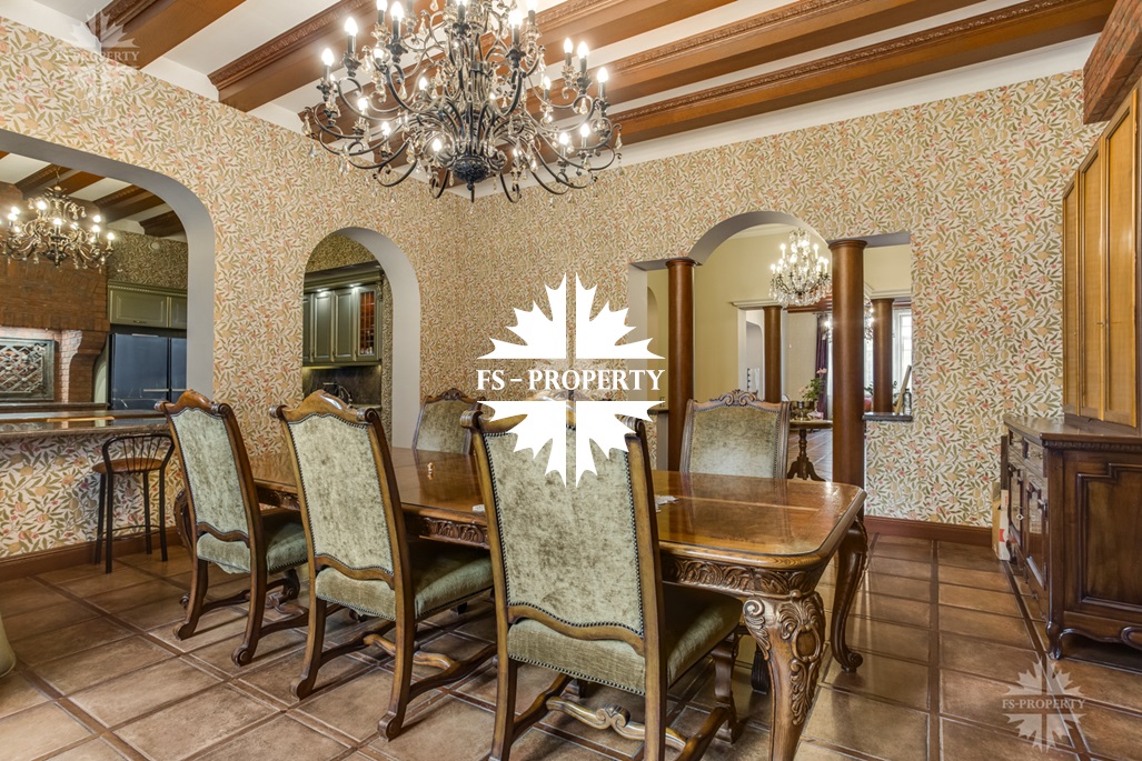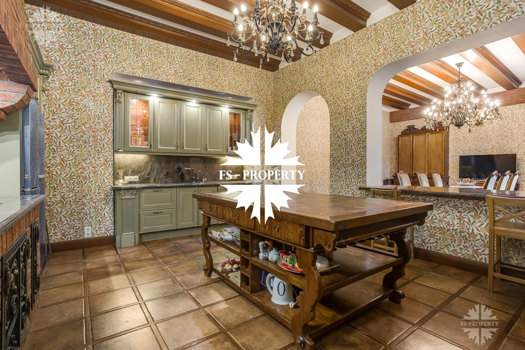 Отделка коттеджа выполнена в стиле Английского замка. Использованы материалы, привезенные из Англии, Италии. Высокое качество отделки. Дом полностью меблирован, готов к проживанию. Оборудован лифт в доме.