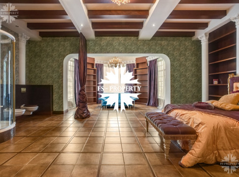 2 этаж: холл, хозяйская спальня, санузел, гардеробная, две спальни со своими санузлами и гардеробной, большой холл, библиотека.