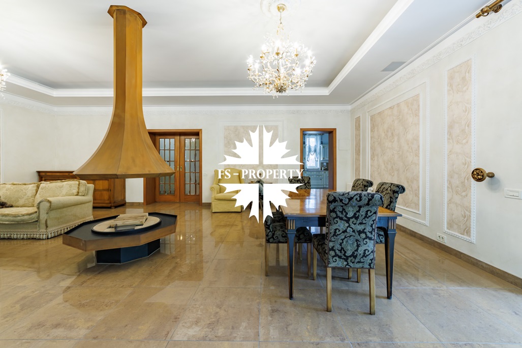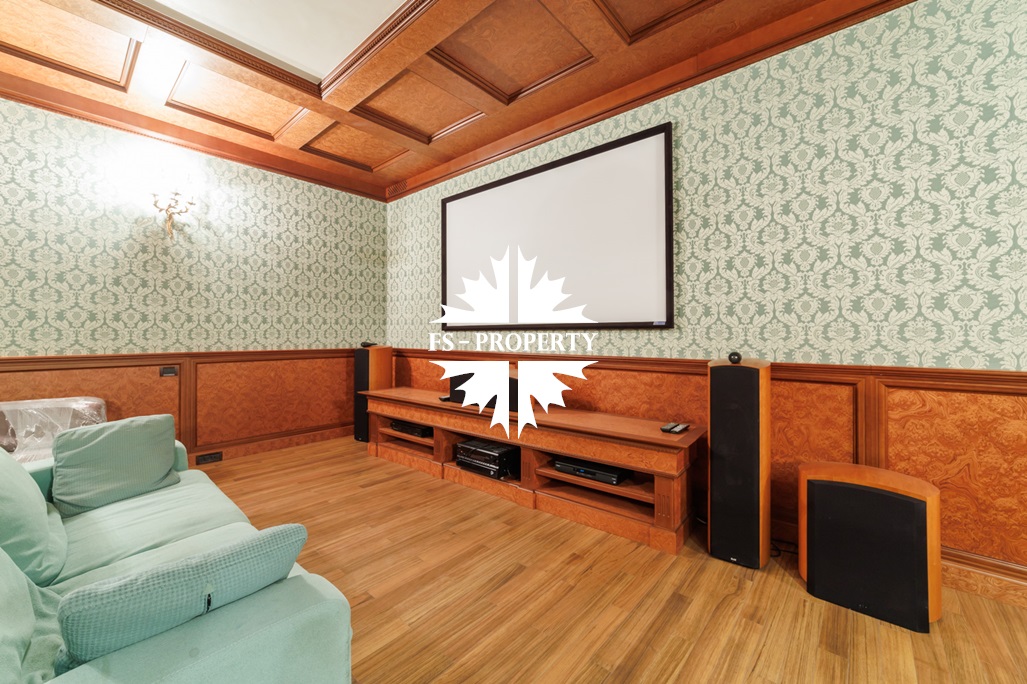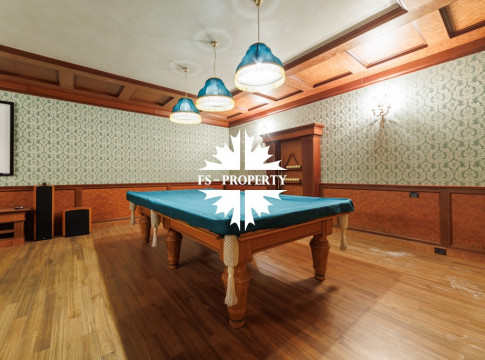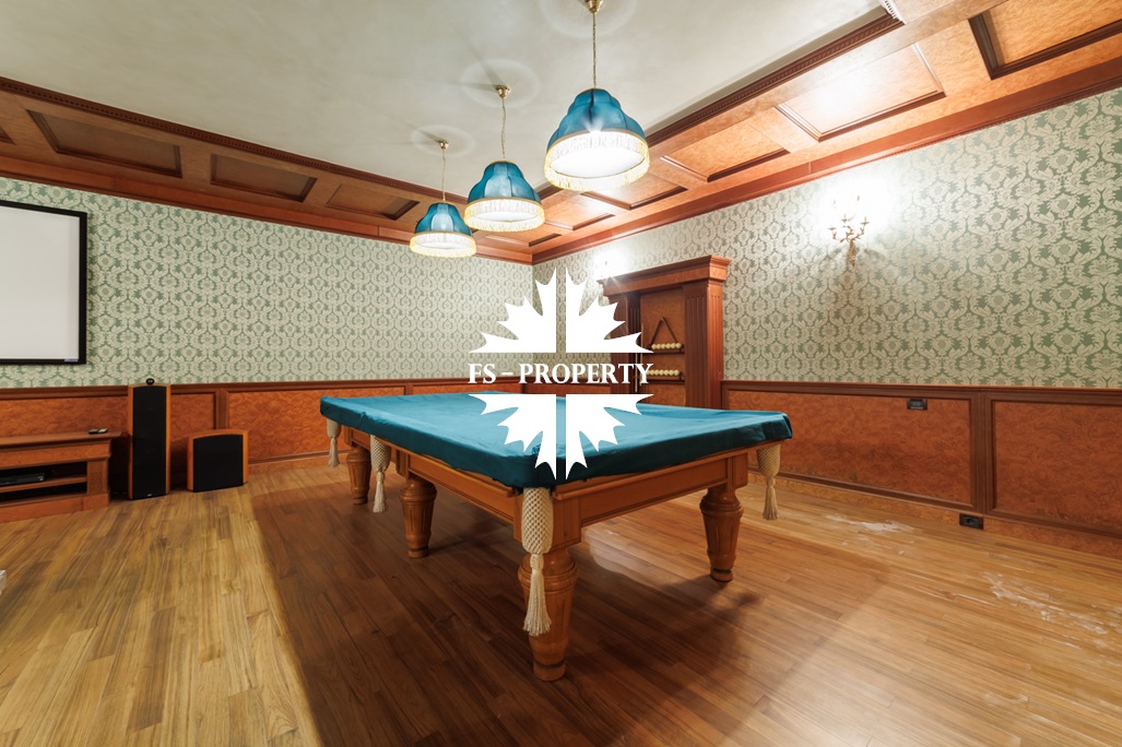 Цокольный этаж: домашний кинотеатр, бильярдная, винный погреб, построчная, кладовая, котельная и сауна.