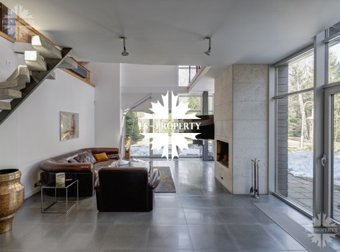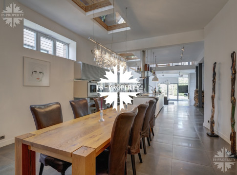 1 этаж: гараж на 4 машины, кухня, столовая, гостиная с камином, выход на барбекю, санузел, сауна.