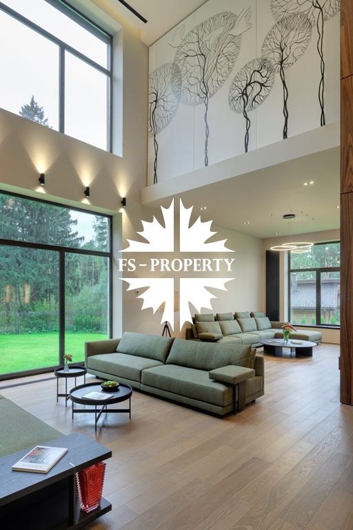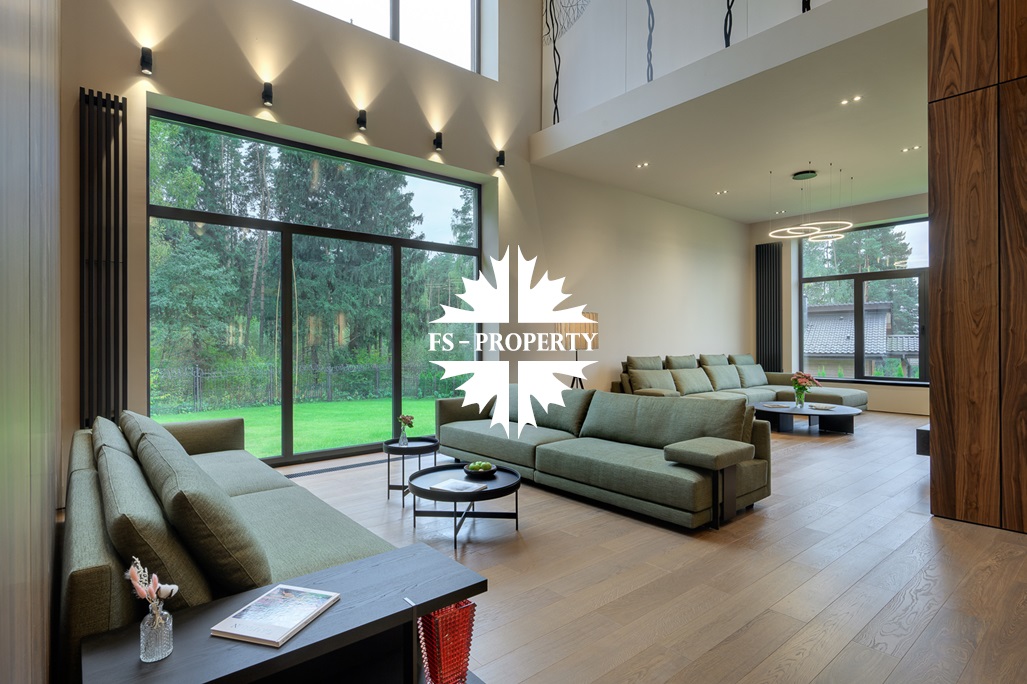 Ощущение пространства в доме обеспечивает большая площадь остекления и высота потолков в комнатах от 3,5 до 7,2 м, а также великолепные виды из окон на все 4 стороны.