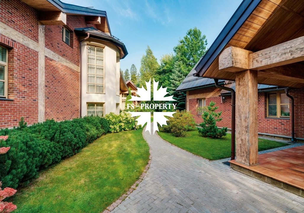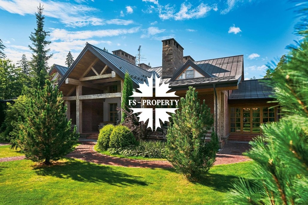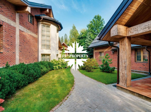Расположенная на просторном участке 50 соток, загородная резиденция объединяет 4 архитектурных объекта в едином стиле швейцарского шале: трехуровневый жилой дом, двухуровневый SPA-комплекс, дом для персонала и гараж с постом охраны.