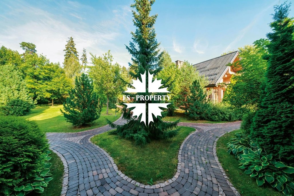 На просторном участке выполнен прекрасный ландшафтный дизайн - настоящий собственный парк, где всегда много солнечного света. Мощёные дорожки извиваются среди лужаек, многочисленных раскидистых деревьев и кустарников. Перед гаражом организована большая площадка для парковки.