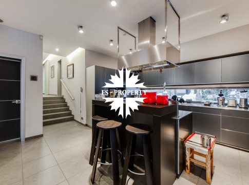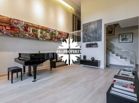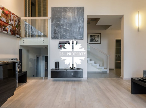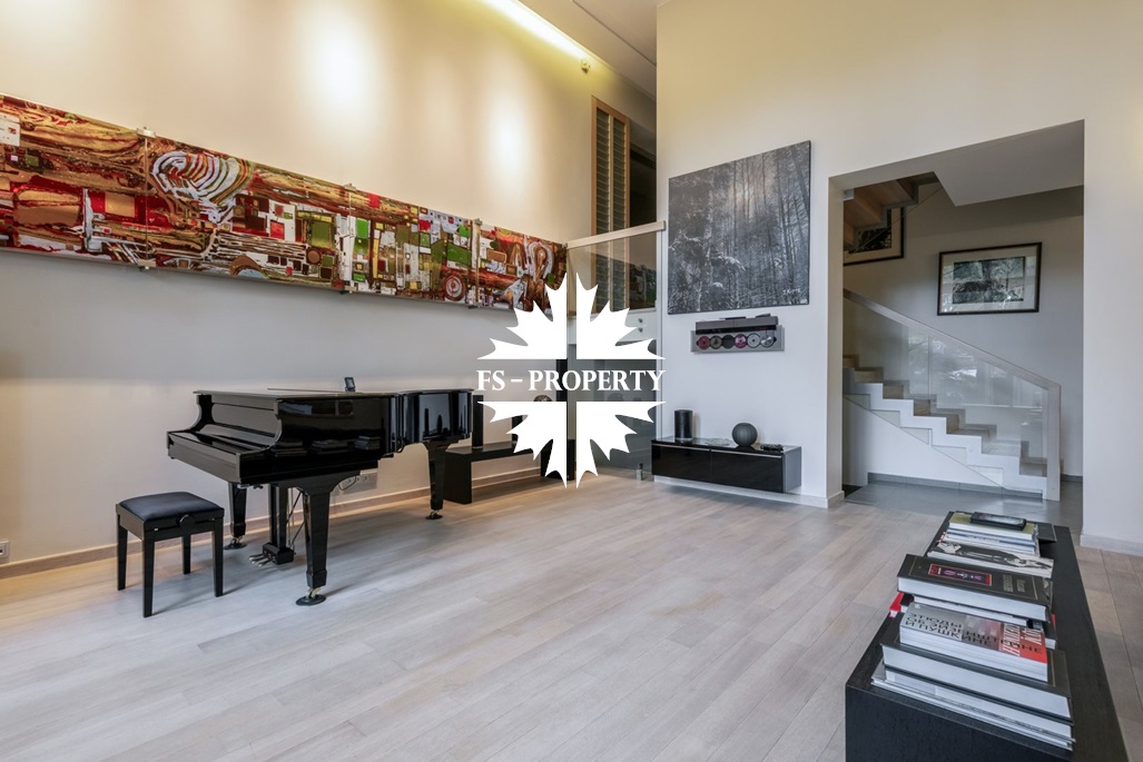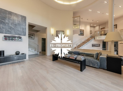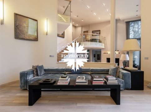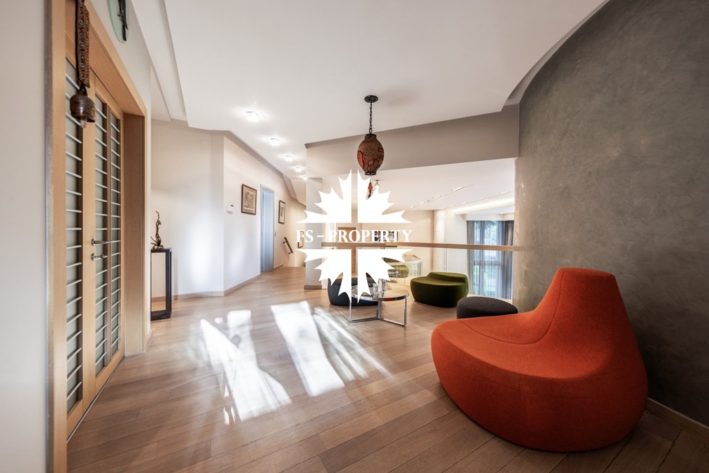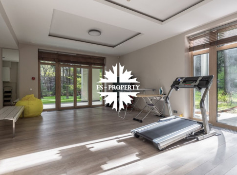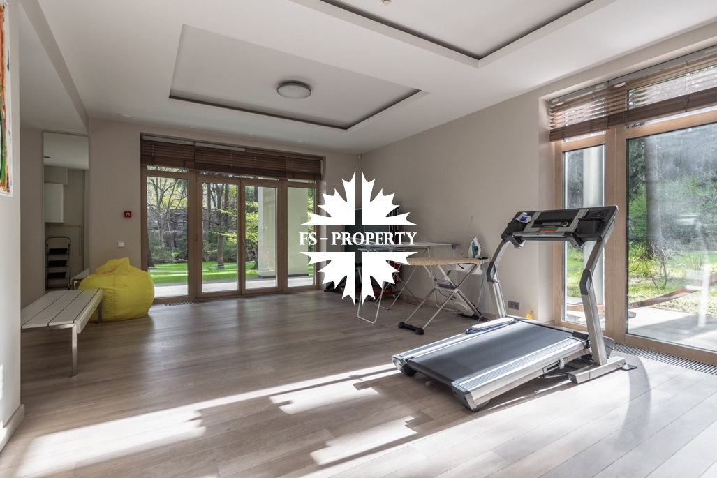 1 этаж включает гостиную с камином и вторым светом, кухню-столовую, кабинет, тренажерный зал, сауну и хаммам;