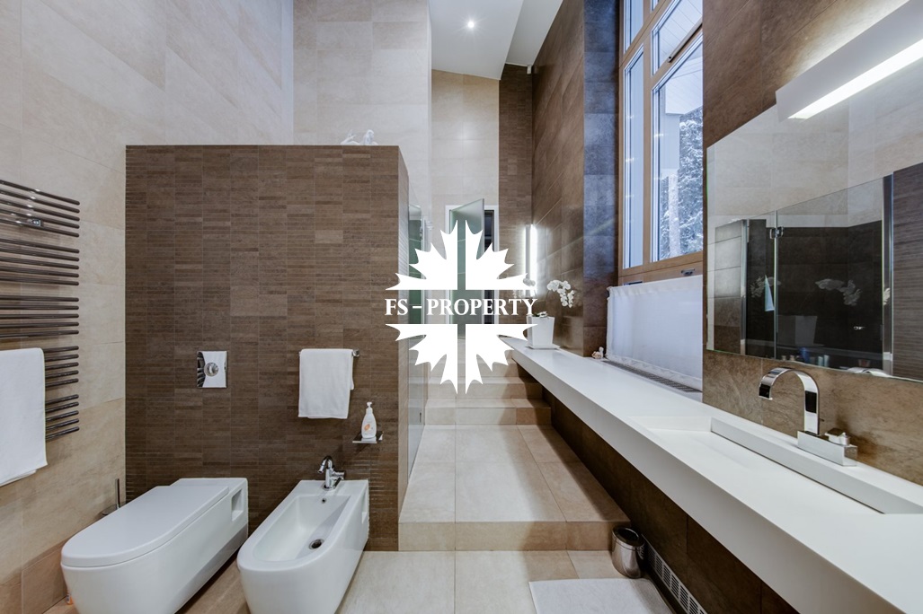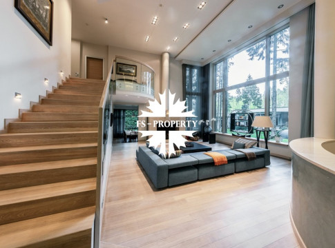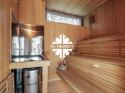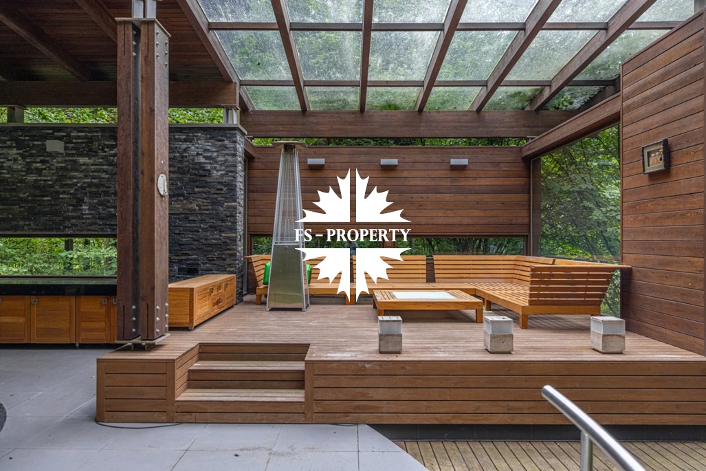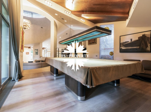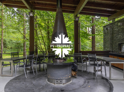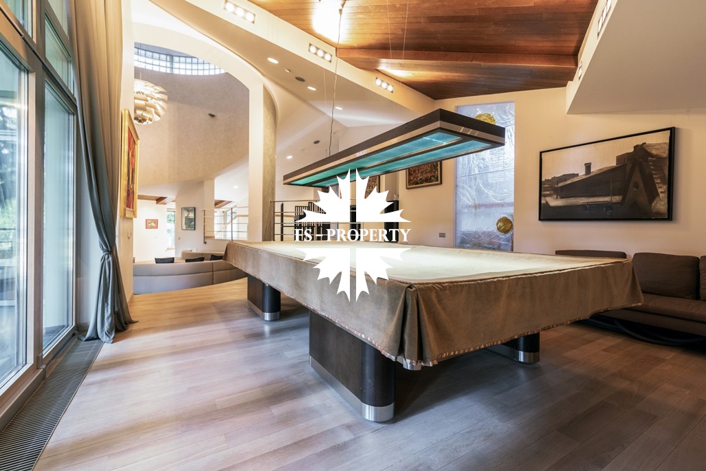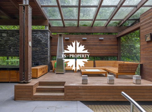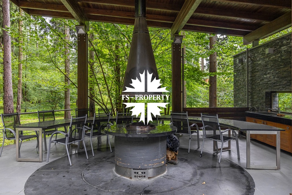 Помимо основного дома площадью 965 кв.м. здесь есть СПА-комплекс в отдельном здании площадью 340 кв.м., гараж на два автомобиля с квартирой для персонала, площадь 195 кв.м., беседка с мангалом (100 кв.м.).