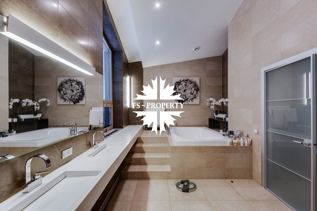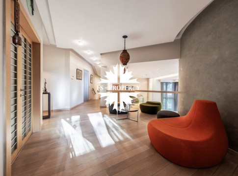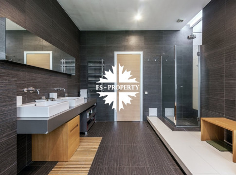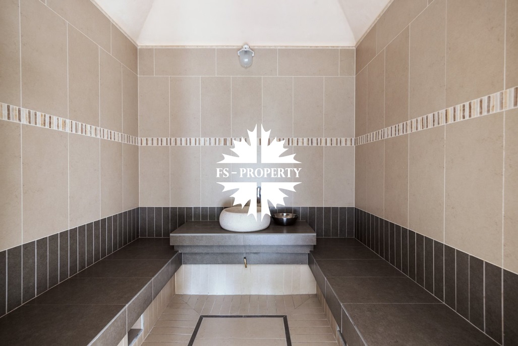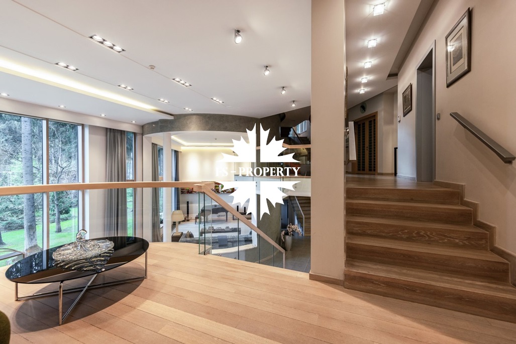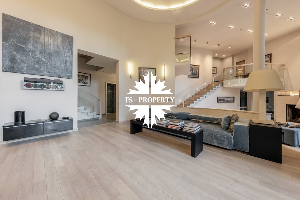 Помимо основного дома площадью 965 кв.м. здесь есть СПА-комплекс в отдельном здании площадью 340 кв.м., гараж на два автомобиля с квартирой для персонала, площадь 195 кв.м., беседка с мангалом (100 кв.м.).
