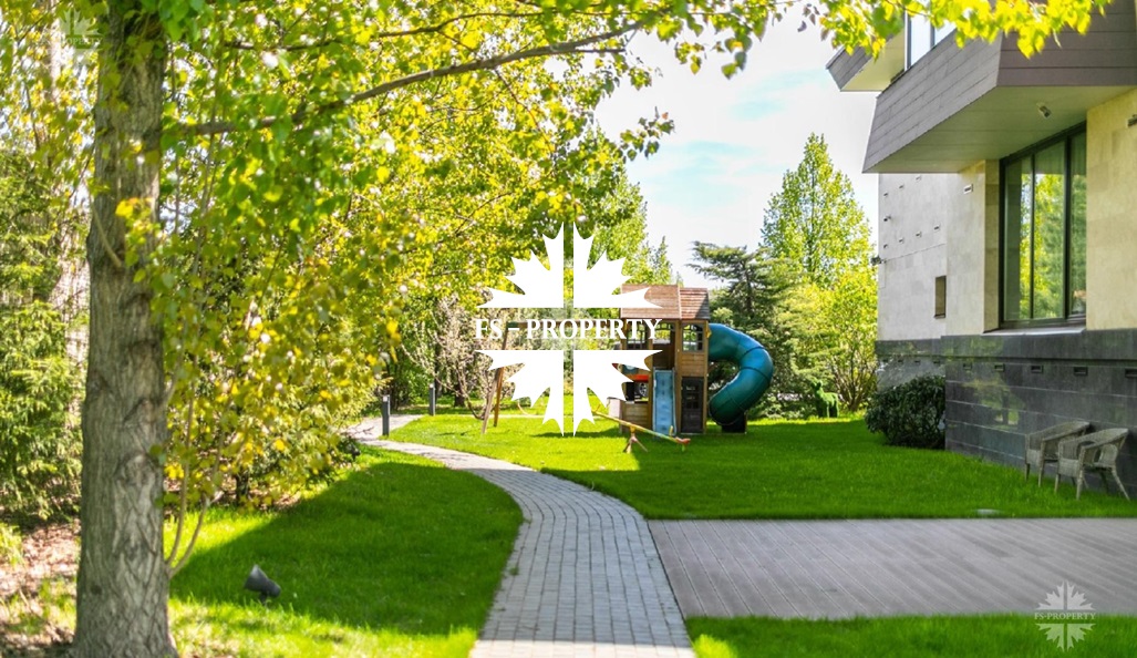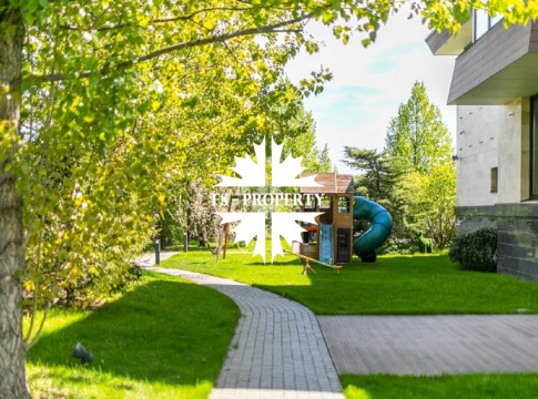 Дом полностью меблирован, оснащен техникой премиум класса. На придомовом участке выполнен ландшафтный дизайн, оборудована детская площадка.