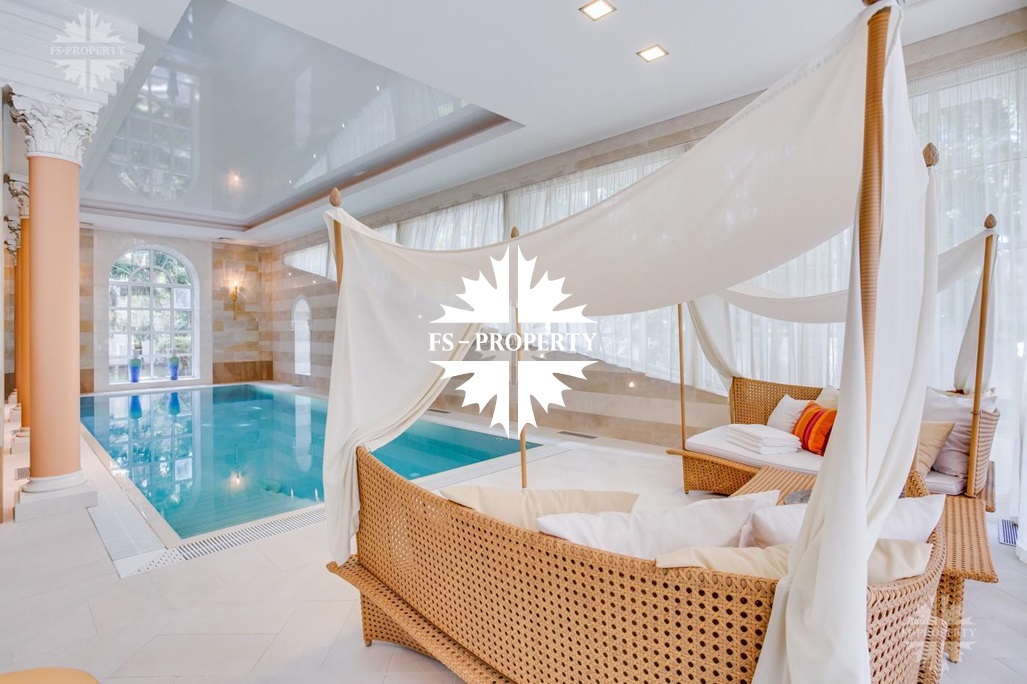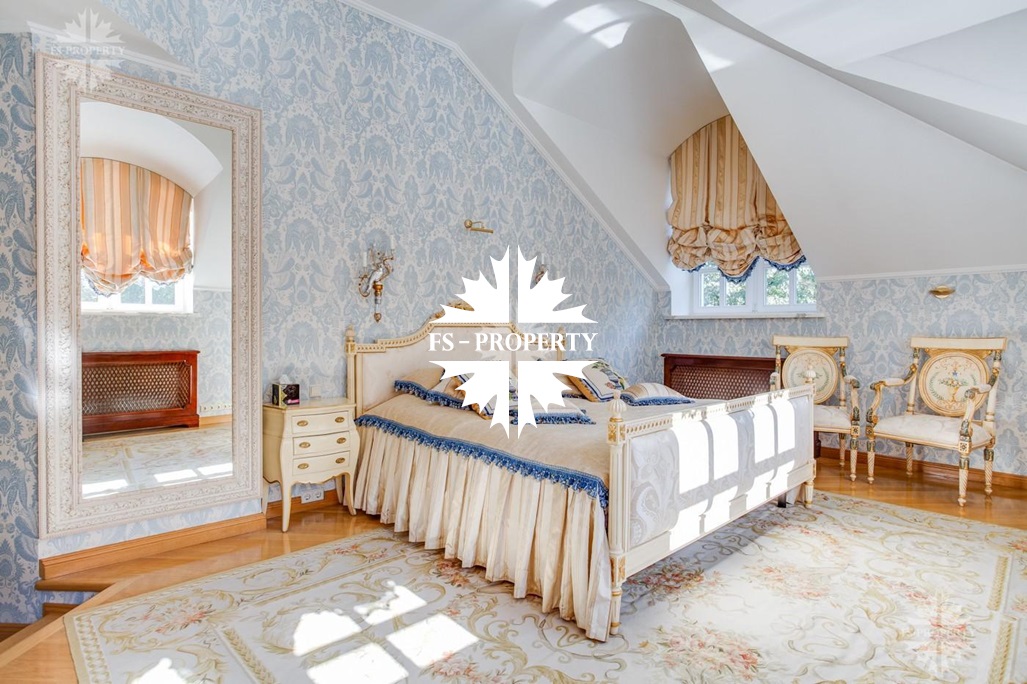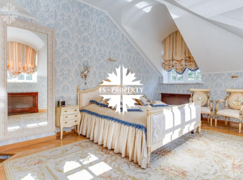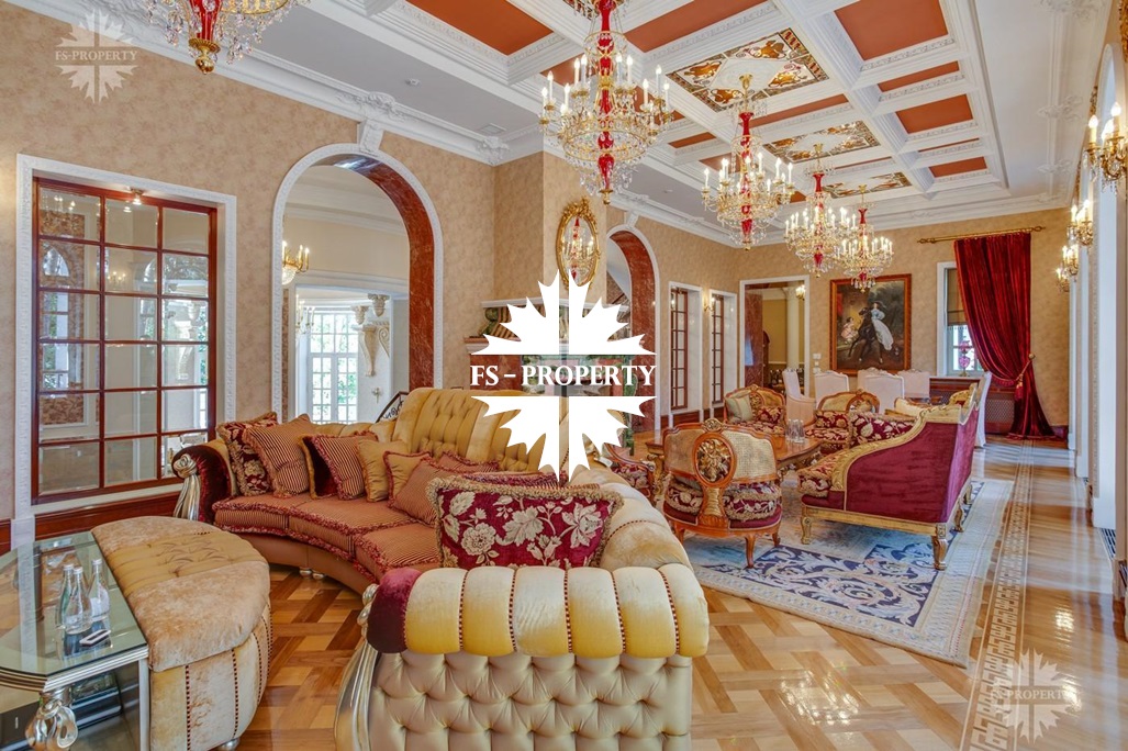 Роскошное поместье в закрытом охраняемом поселке. К удобству владельцев дома – исчерпывающая инфраструктура Рублево-Успенского шоссе с престижными учебными заведениями, образовательными центрами, бутиками и ресторанами, лечебно-оздоровительная (территория Рублево-Успенского ЛОК) с детскими и спортивными площадками, рестораном, бассейном, школой, детским садом, фитнес-центром.