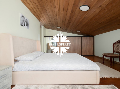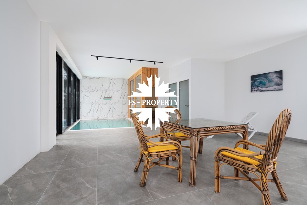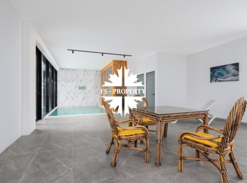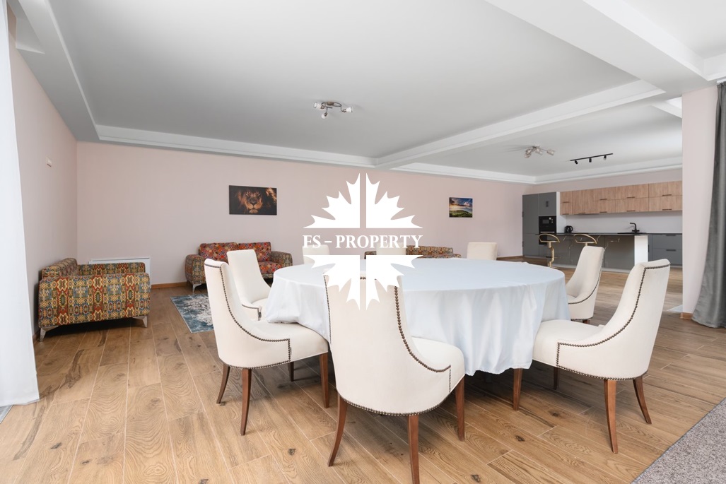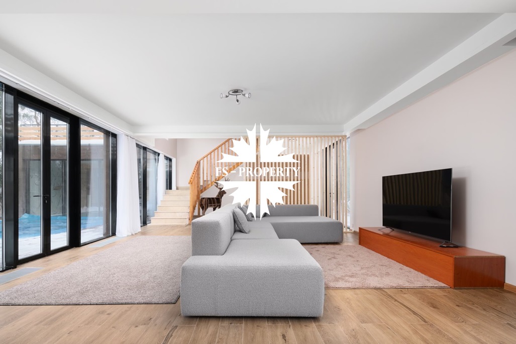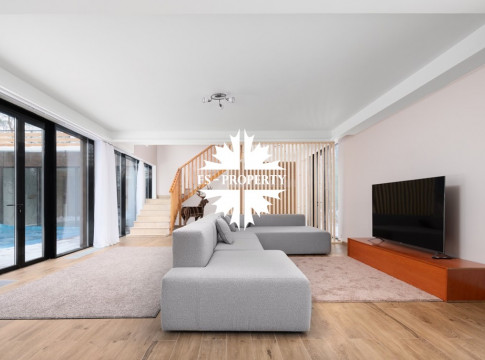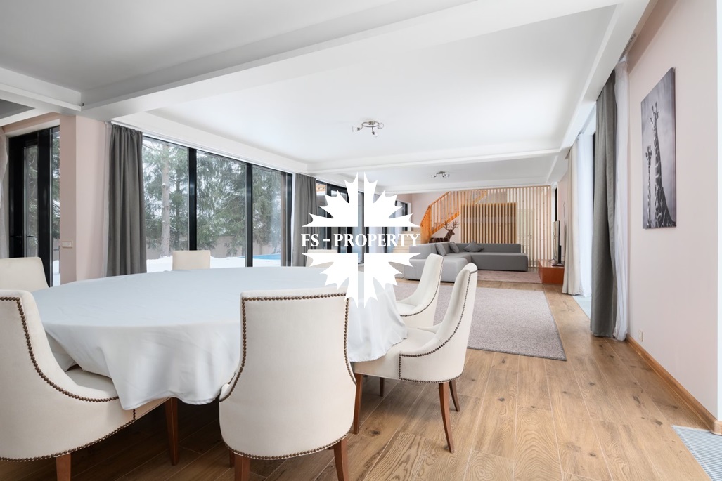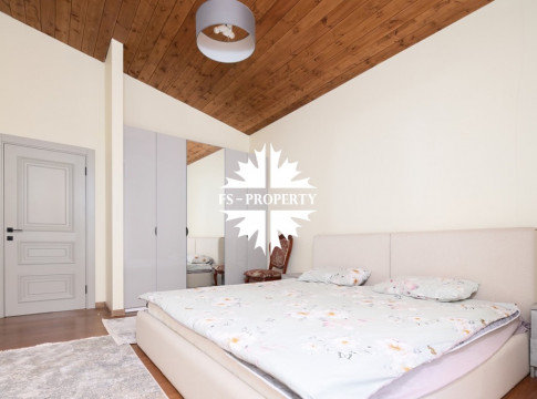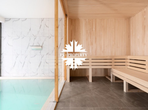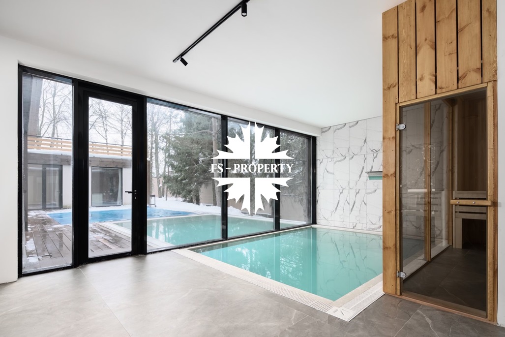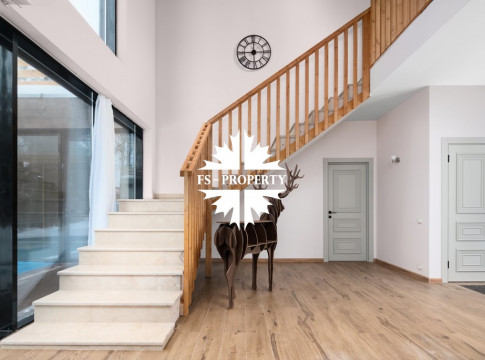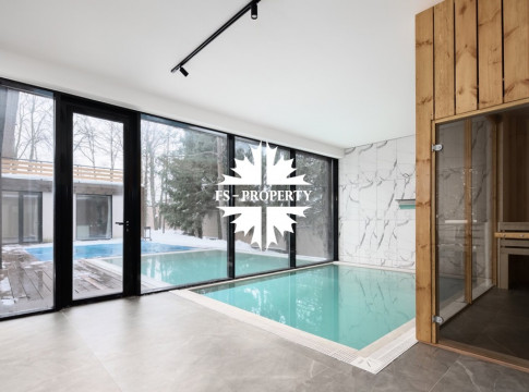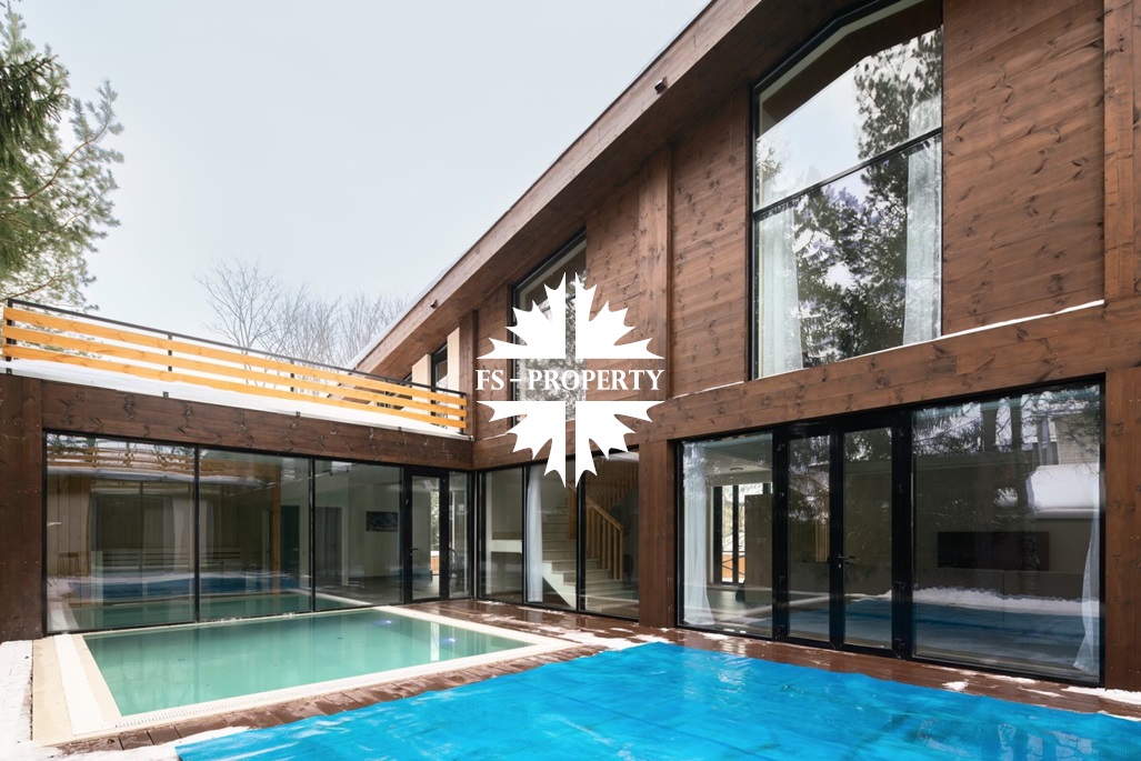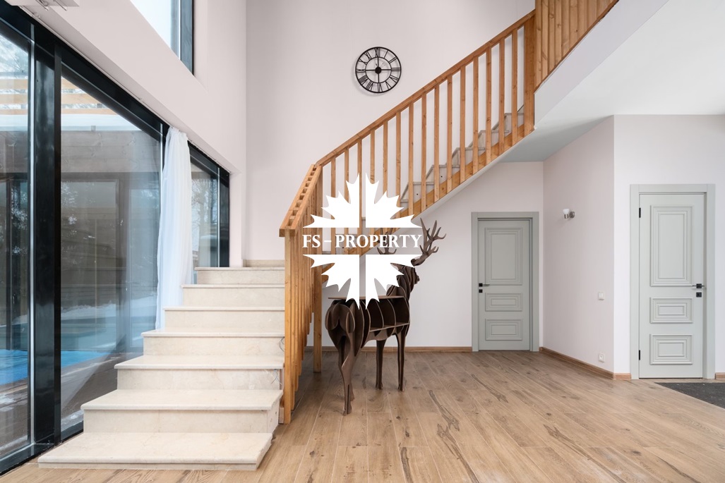 В доме 4 спальни, SPA-зона с сообщающимися открытым и закрытым бассейнами и сауной, большие террасы. Высокие потолки, большие панорамные окна. Дом готов к въезду, имеется вся необходимая мебель и техника.