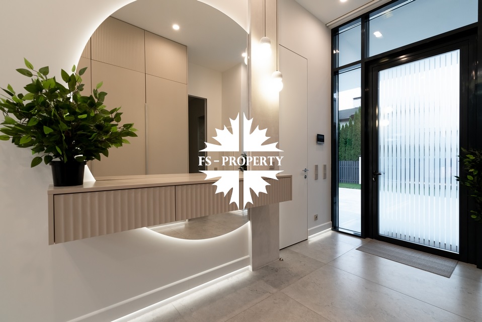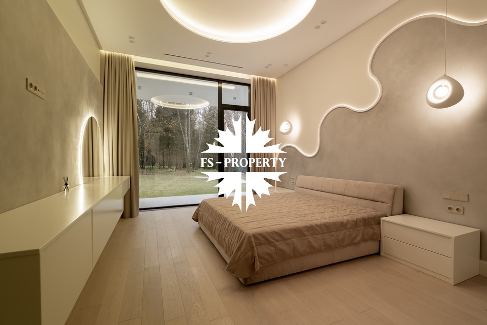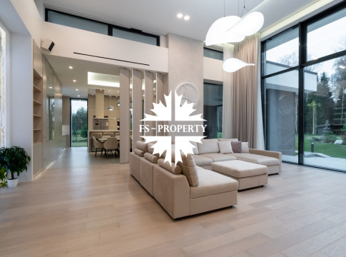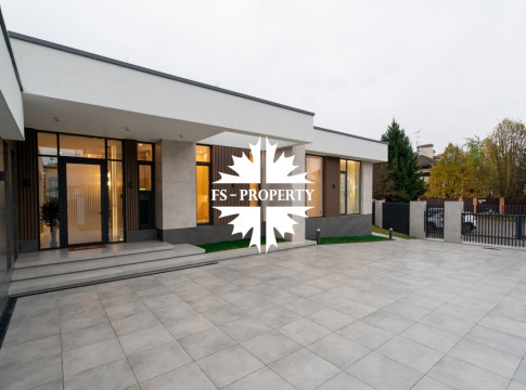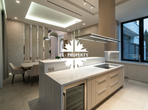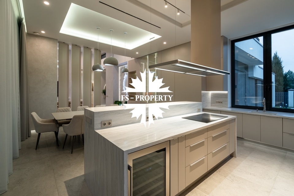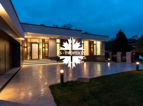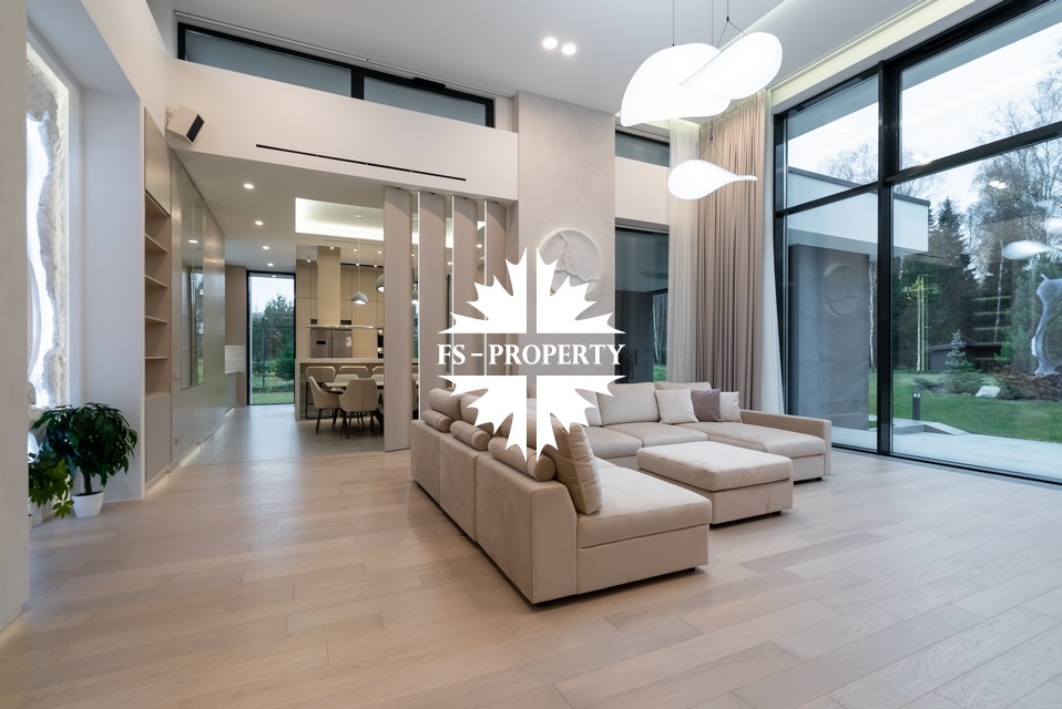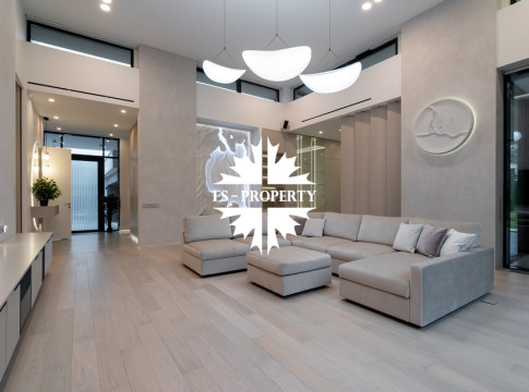 Предлагается к продаже полностью готовый к проживанию уникальный одноэтажный дом площадью 414м на участке 65 соток. Планировка: просторная гостиная + кухня-столовая, 3 спальни и 2 детских комнаты. При строительстве использовались лучшие материалы и технологии. Монолитный утепленный фундамент с гидроизоляцией. Теплые и дышащие стены из керамического блока Porotherm с дополнительной теплоизоляцией. Фасад комбинированный — керамогранит крупного формата, штукатурка и натуральный ясень. Панорамное остекление от пола до потолка в алюминиевых профилях с терморазрывом. Приточно-вытяжная вентиляция с климат-контролем, система Умный дом (управление светом, шторами, климатом и безопасностью со смартфона), бесшовный Wi-Fi по всему дому. Авторская кухня и мебель, изготовленные на заказ. Готовый домашний кинотеатр профессионального уровня и мультирум-система. Теплый гараж на 2 авто с дополнительными зонами: серверная, рукомойник, место для гигиены питомцев. Продолжение гостиной — всесезонная уличная веранда с: зоной барбекю, подвесным камином и подовой печью, панорамным остеклением и автоматическими дверями.