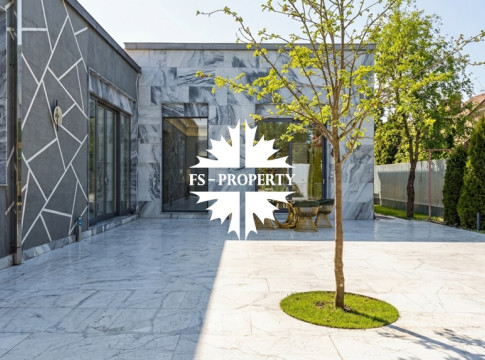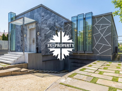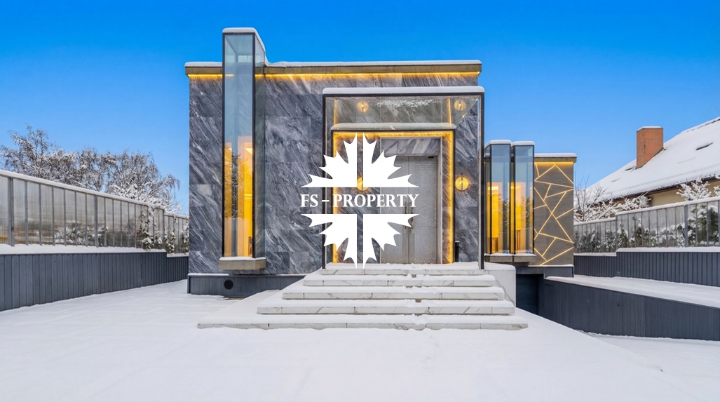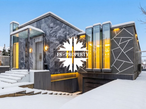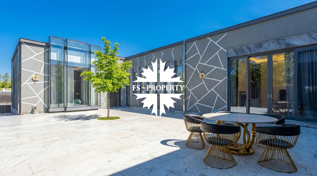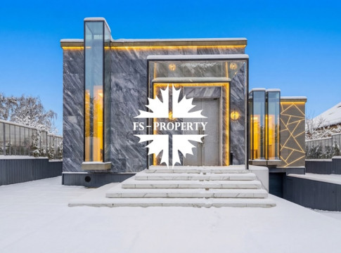 В охраняемом коттеджном посёлке «Усово Плюс» на участке 8.5 соток представлен образец современной архитектурной мысли — одноэтажный дом площадью 402 м². Современный и лаконичный фасад, облицованный серым мрамором, задаёт тон исключительной изысканности. Принцип чистых линий и минимализма продолжается внутри, где царит интерьер в стиле «тихой роскоши»: каждая деталь служит гармонии, комфорту и визуальному покою. Грамотно продуманная планировка создаёт бесшовное жилое пространство, наполненное светом. Безрамное панорамное остекление стирает границу между интерьером и ландшафтом, наполняя дом солнечным светом и создавая эффект парящего объёма. Безупречное инженерное оснащение: приточно-вытяжная вентиляция с рекуператором, тёплые полы и канальное кондиционирование по всему дому создают идеальный микроклимат круглый год.