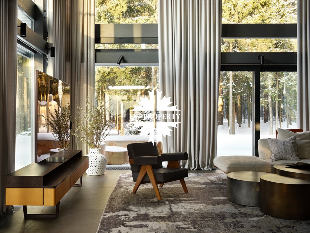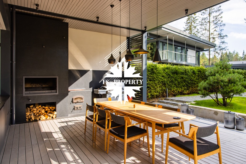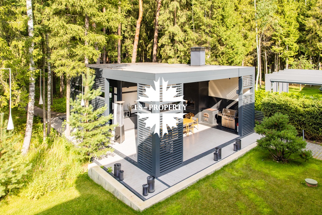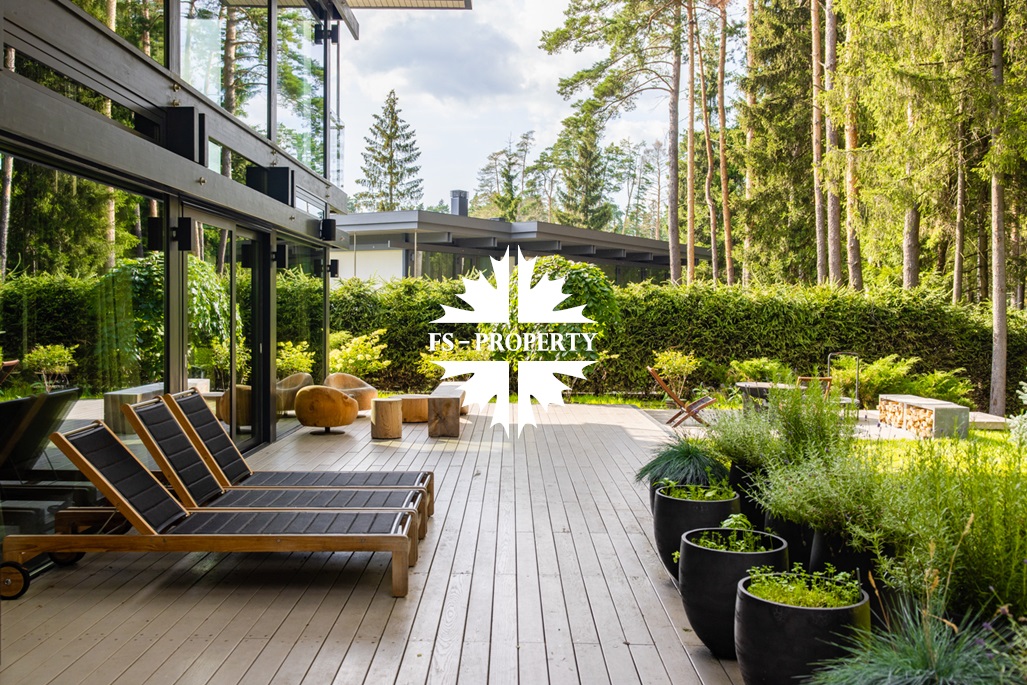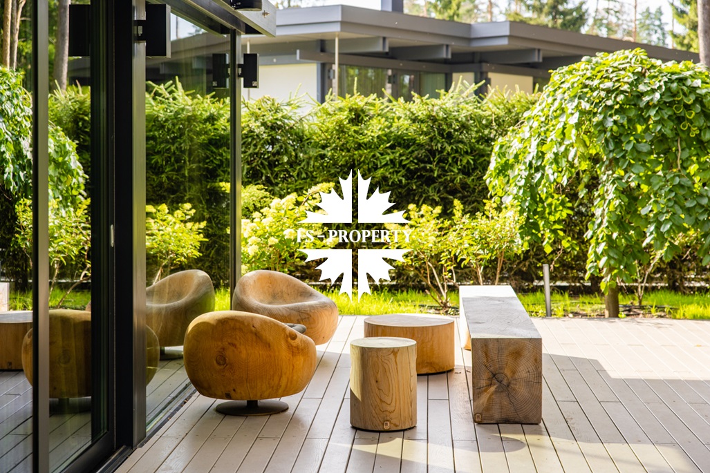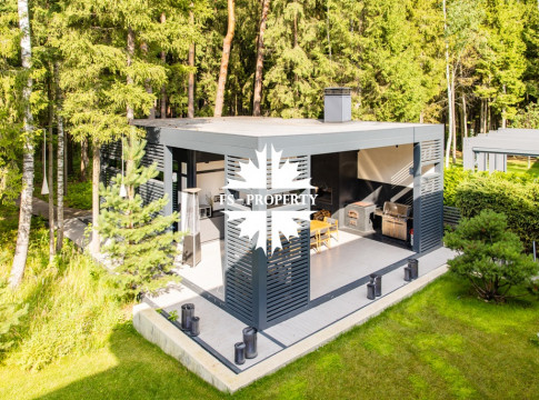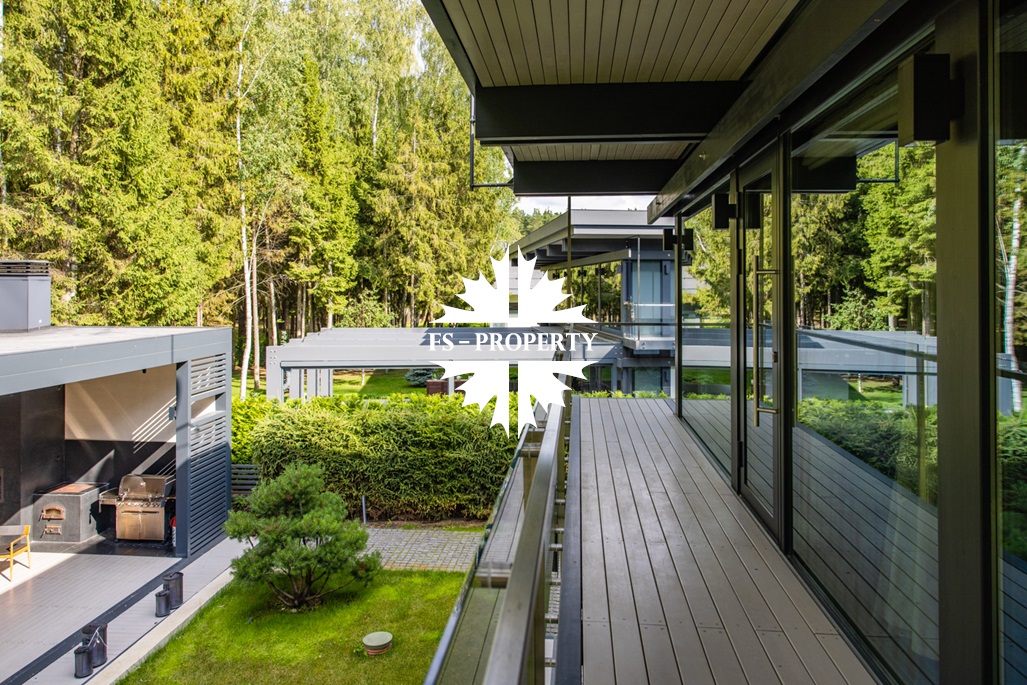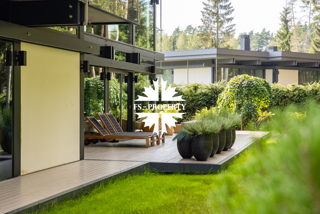 В камерном охраняемом поселке на Новой Риге предлагается к продаже новый дом 428 кв.м., построенный по немецкой технологии экологического энергоэффективного строительства Huf Hause, где применяется натуральное дерево и стекло.