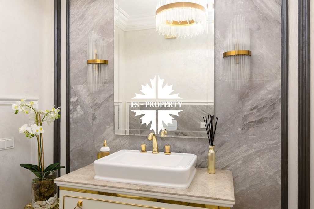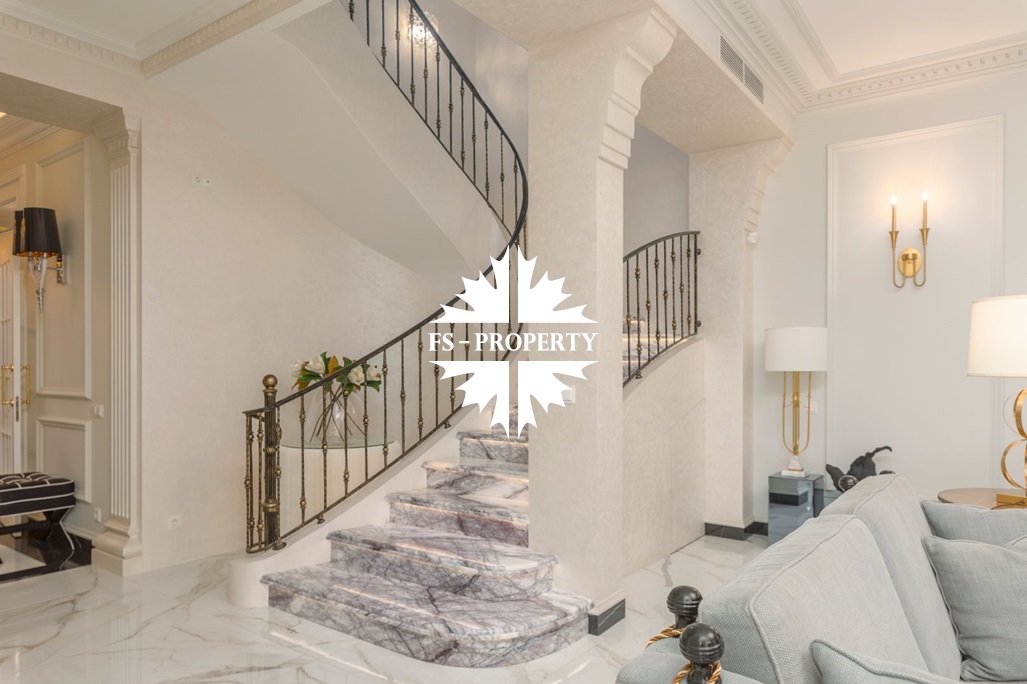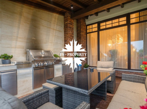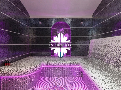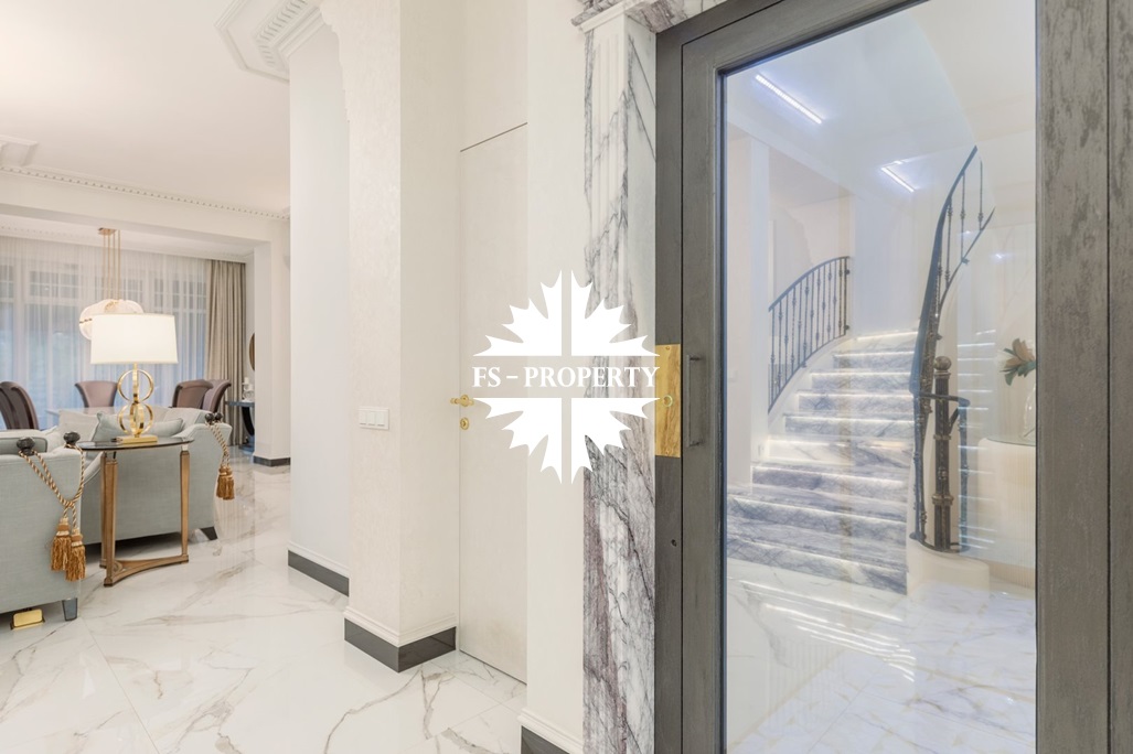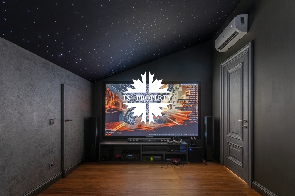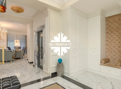В доме 5 спален, 5 санузлов, кинотеатр, хаммам, оборудован лифт.