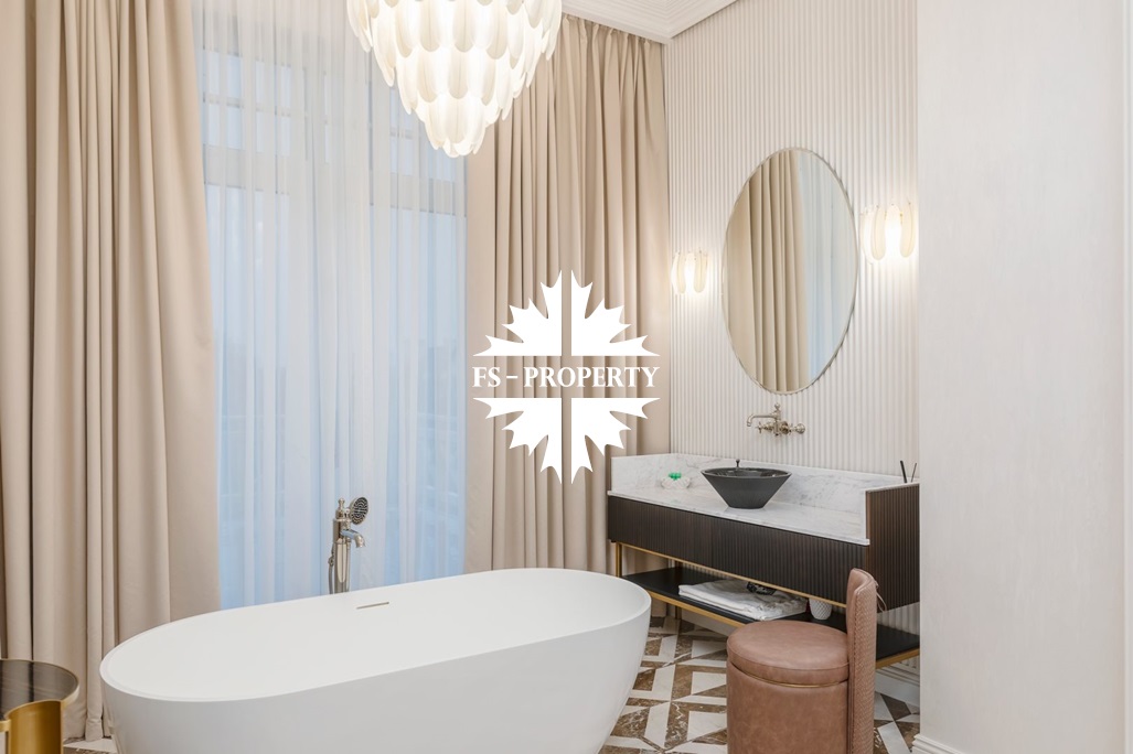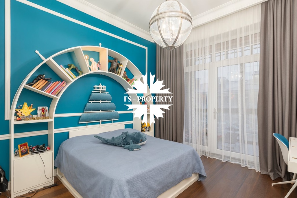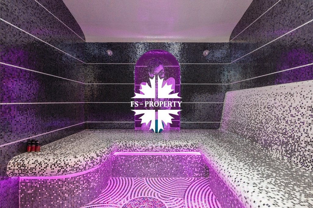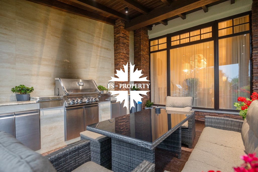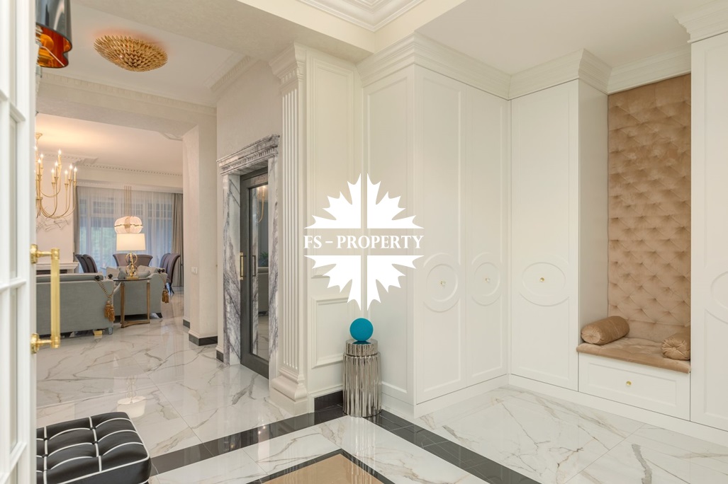 В доме 5 спален, 5 санузлов, кинотеатр, хаммам, оборудован лифт.
