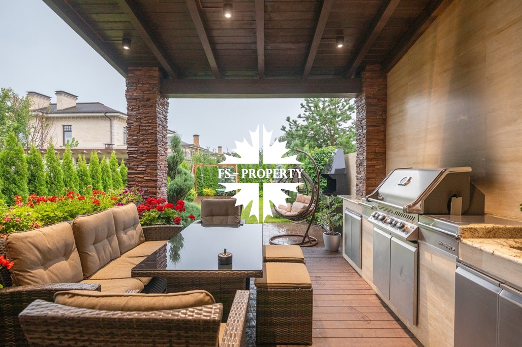 На участке 4 сотки выполнен красивый ландшафтный дизайн, предусмотрена шикарная зона барбекю, оборудована детская площадка. Имеется крытая парковка для двух автомобилей.
