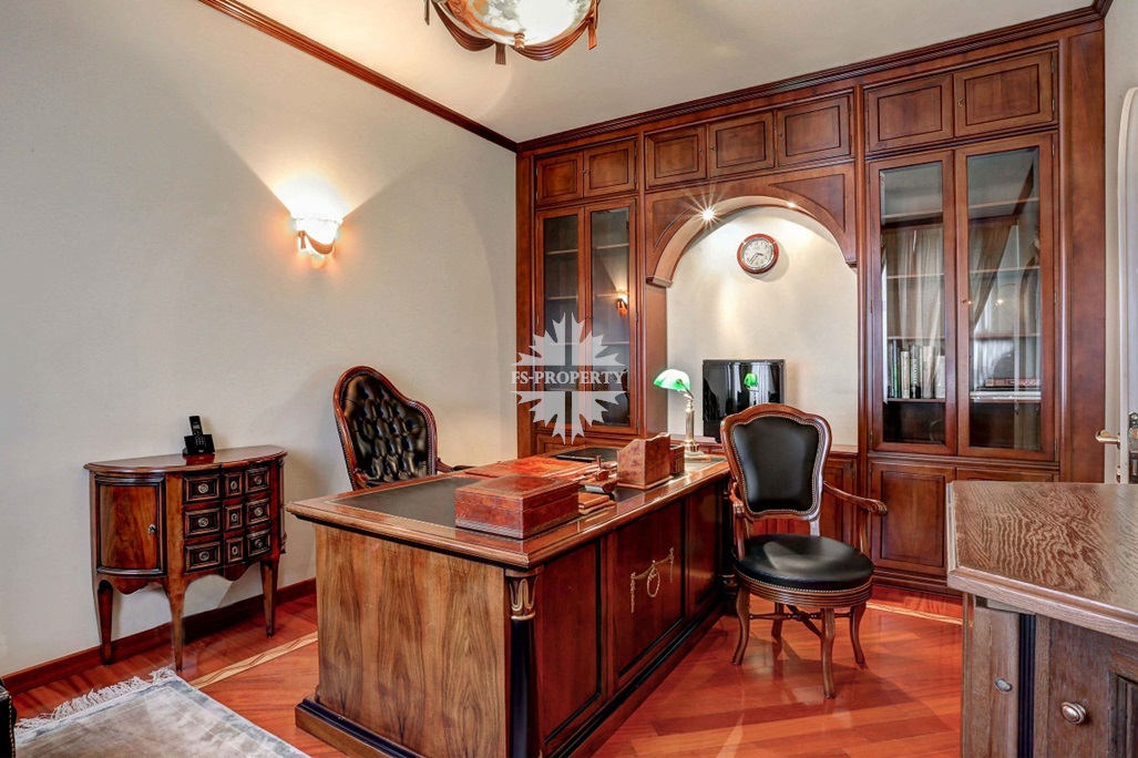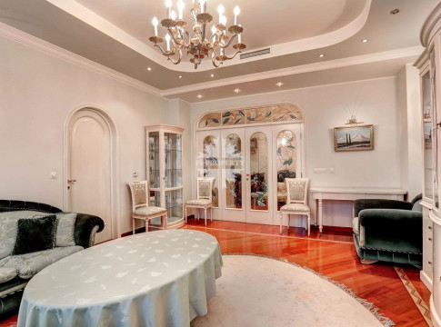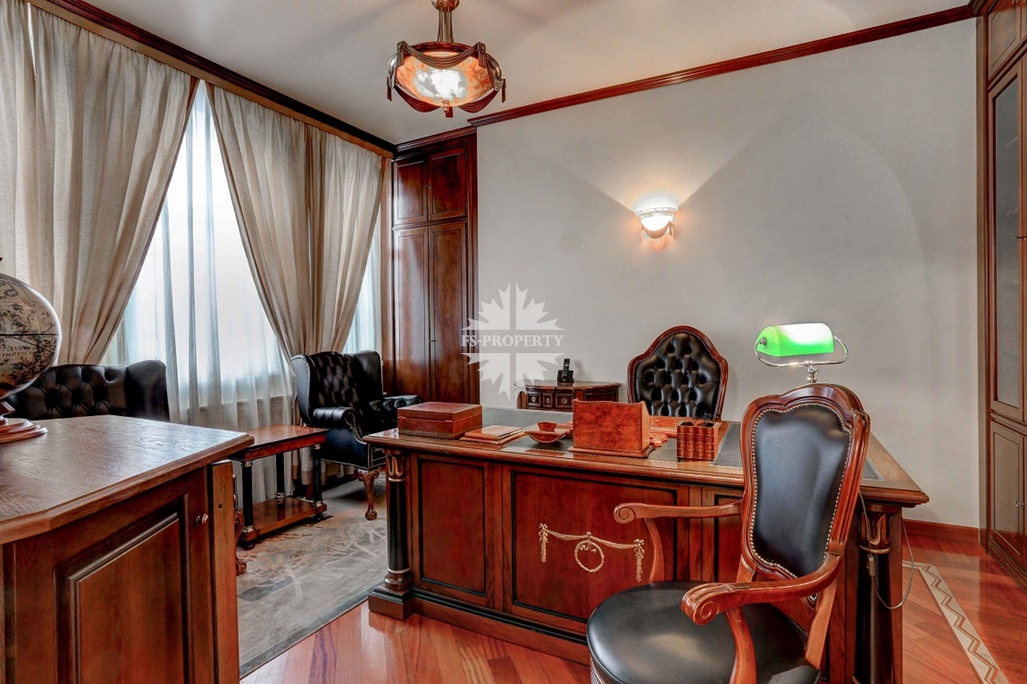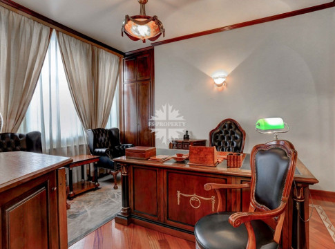 Действующей планировкой предусмотрены: гостиная-кухня-столовая, 3 спальни, кабинет, холл с хозяйственной комнатой, гостевым санузлом гардеробными шкафами. Высота потолков 3,20м. Имеется балкон.