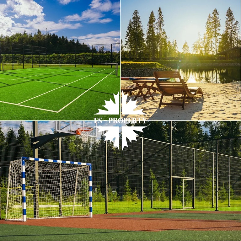 - многочисленные функциональные сооружения для занятия различными видами спорта (футбольное поле, мультиспортивная площадка, лыжня в хвойном лесу, фитнес-клуб, зал для падел-тенниса, сквош-площадка, теннисный корт, йога центр, поле для пляжного волейбола, тропы для скандинавской ходьбы).
