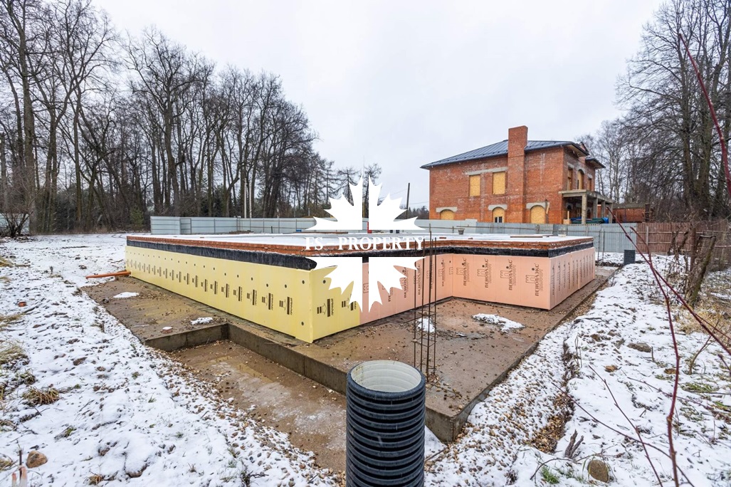 Есть проект дома в классическом стиле площадью 361 кв.м, залит фундамент под первый этаж 183 кв.м (без учета террас 92 кв.м). Планировка дома по проекту предусматривает 3 просторные спальни (каждая - со своей ванной и гардеробной), кухню-столовую, двухзонную гостиную с камином и выходом на террасу, прихожую с гардеробной гостевой с/у, постирочную, котельную.