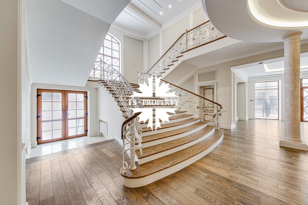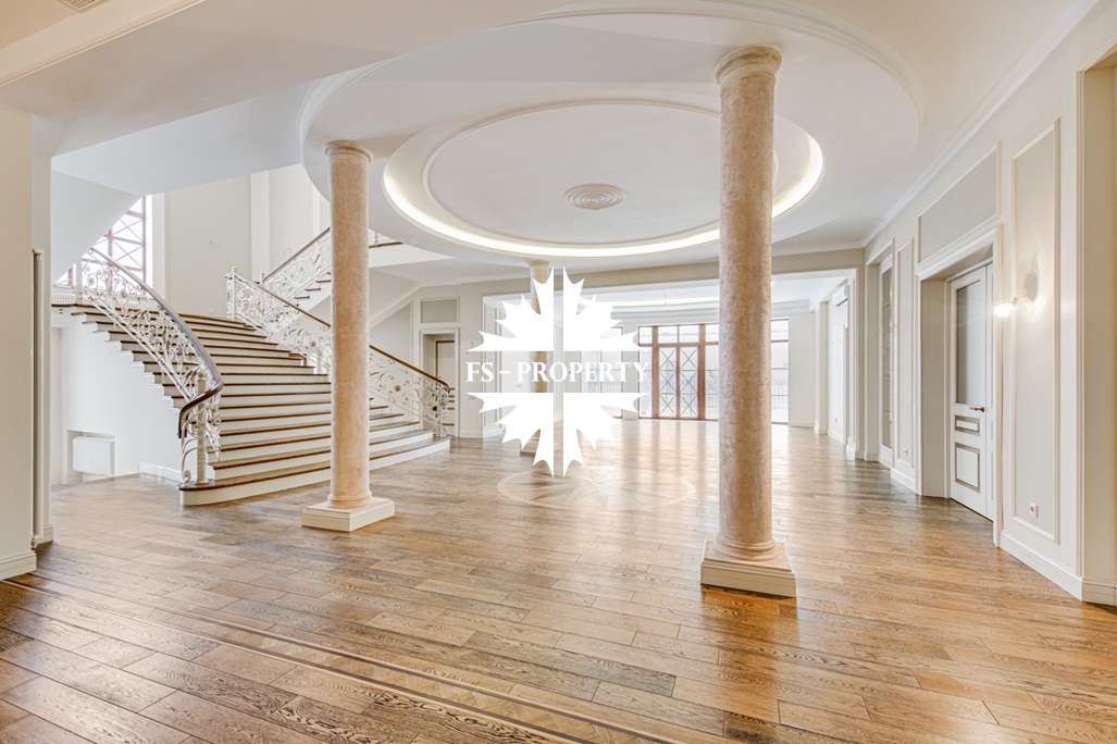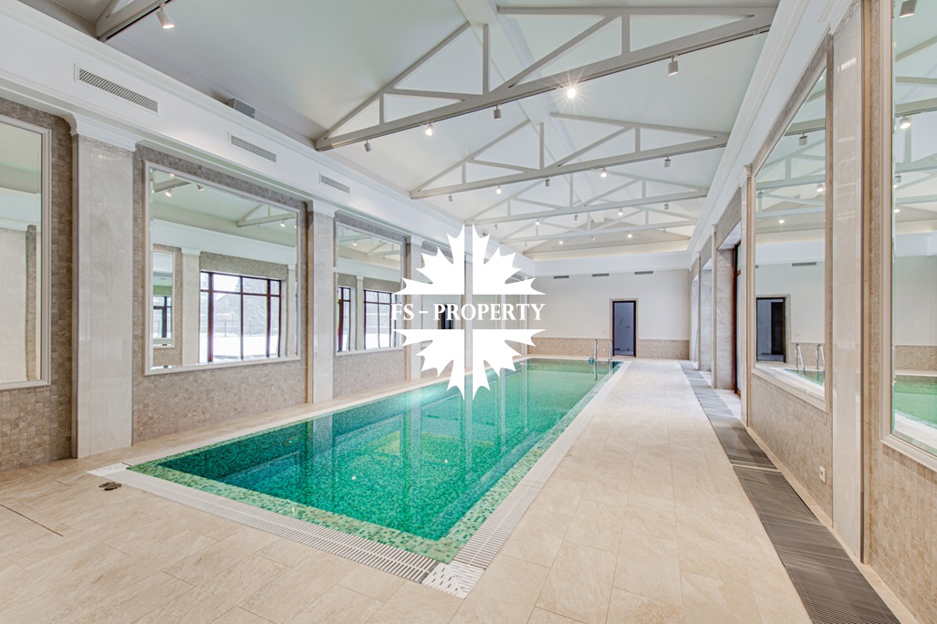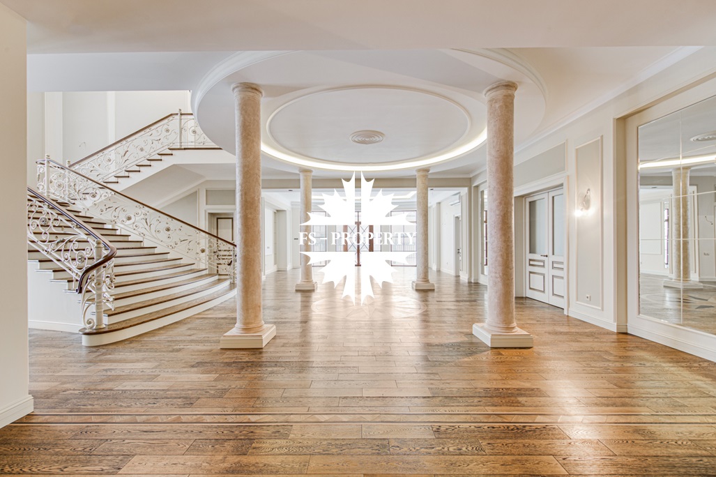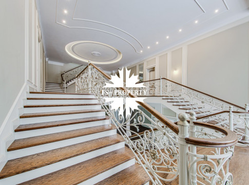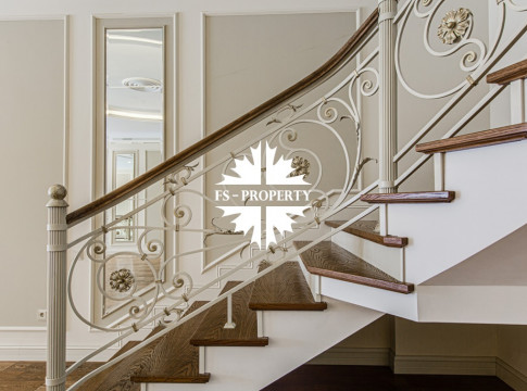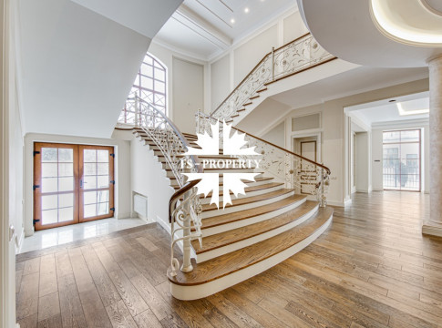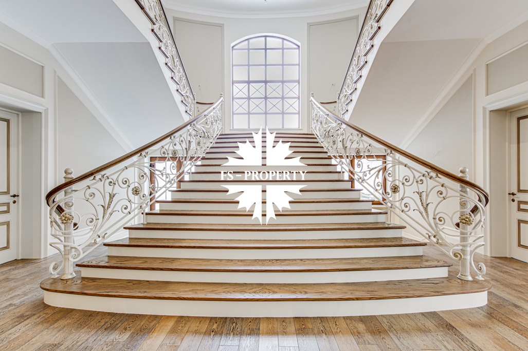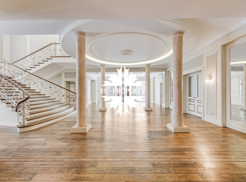 Особняк 1 070 кв.м. в классическом стиле с отделкой в благородных тонах. В доме 5 спален, гостиная с каминной зоной, три просторных балкона, зимний сад, бассейн, помещения для сауны и тренажерного зала.