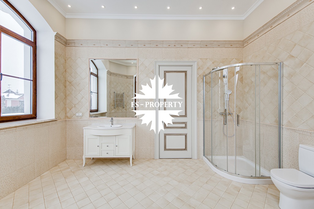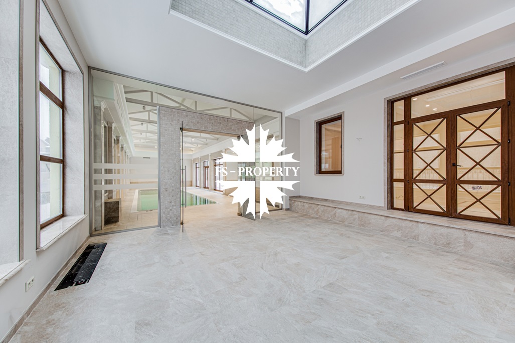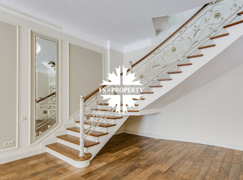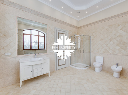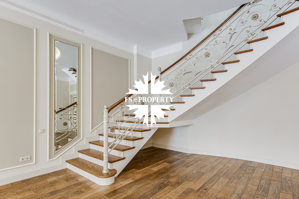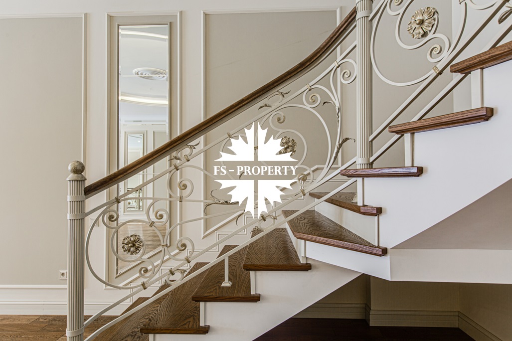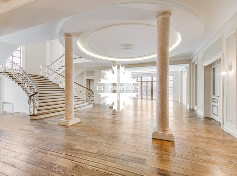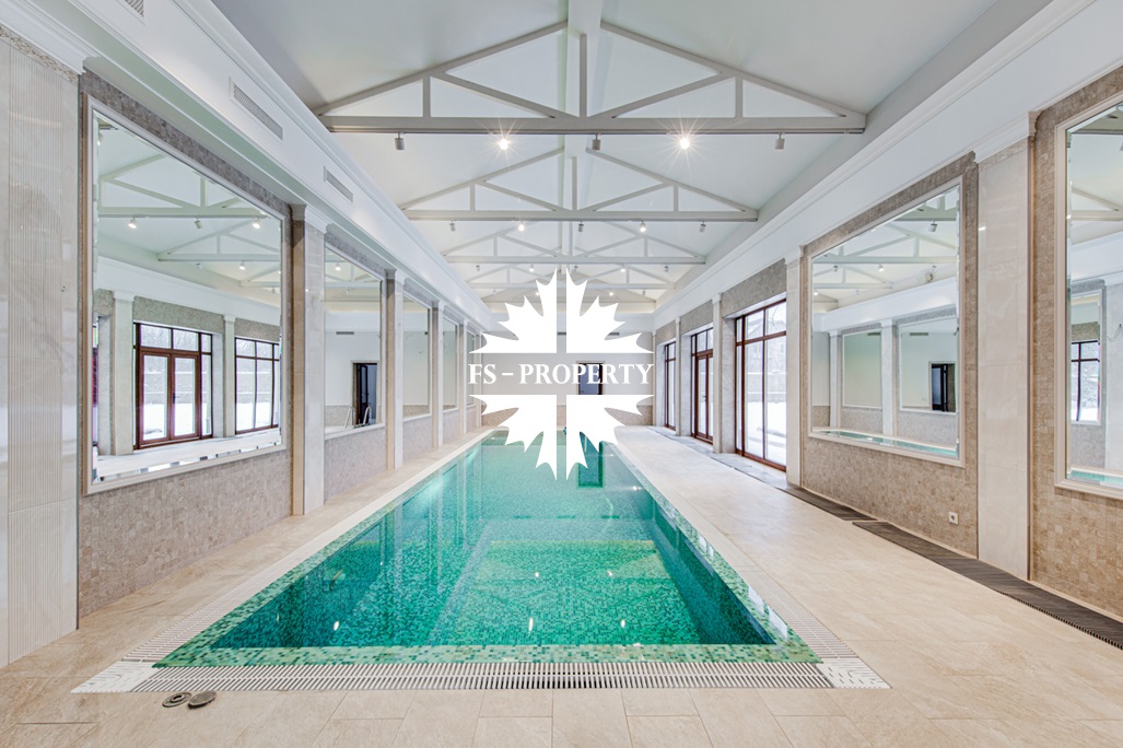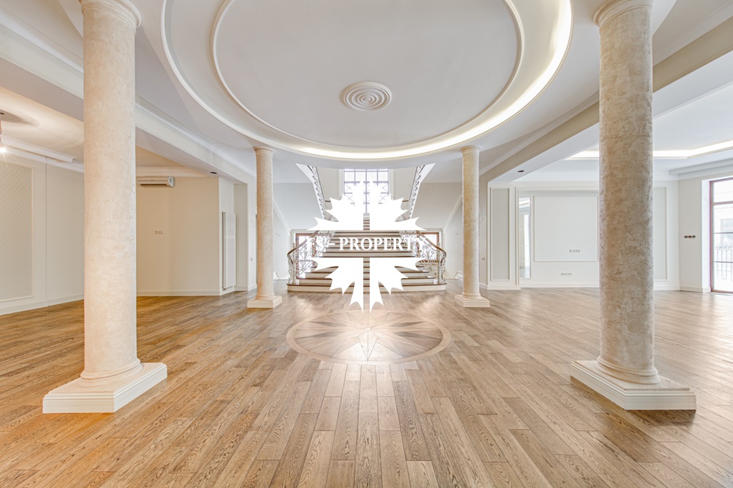 Особняк 1 070 кв.м. в классическом стиле с отделкой в благородных тонах. В доме 5 спален, гостиная с каминной зоной, три просторных балкона, зимний сад, бассейн, помещения для сауны и тренажерного зала.