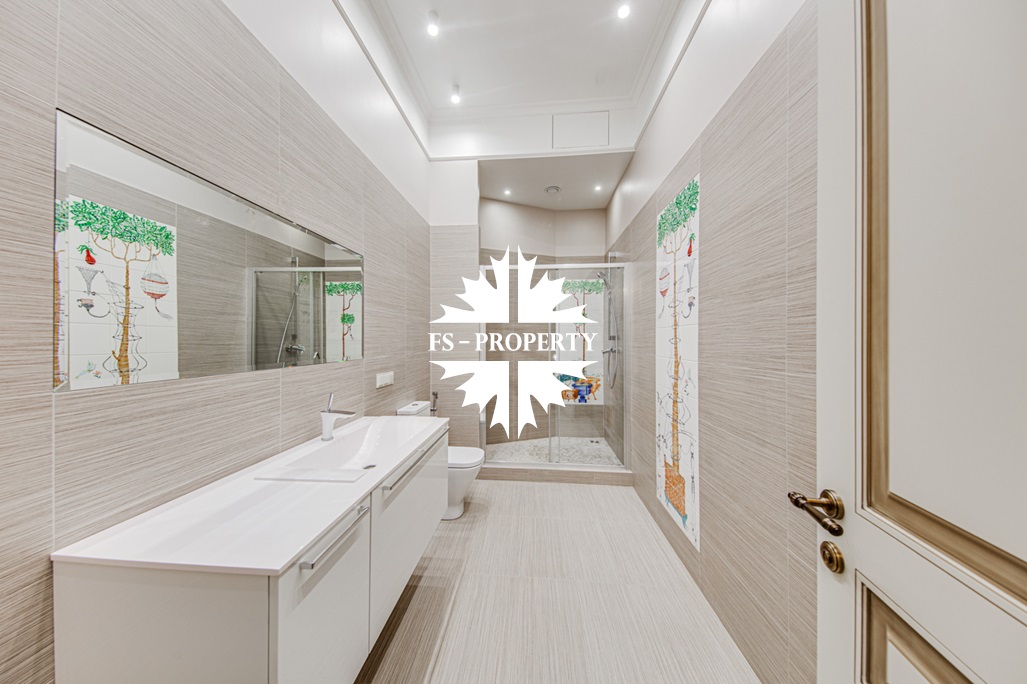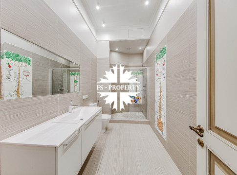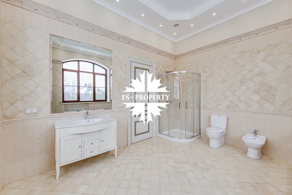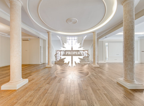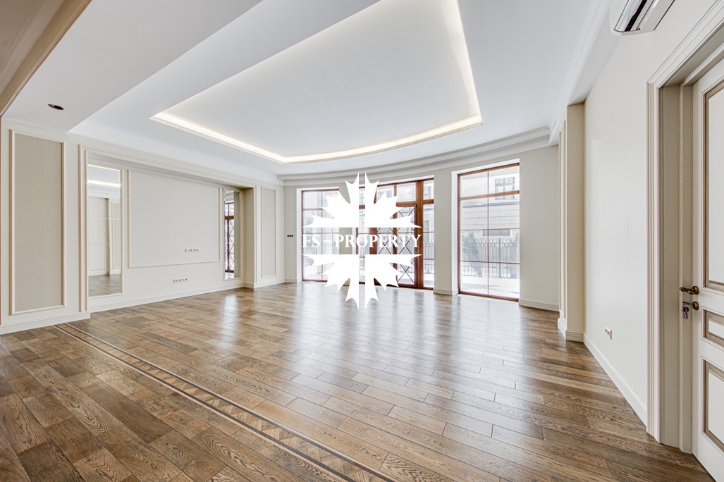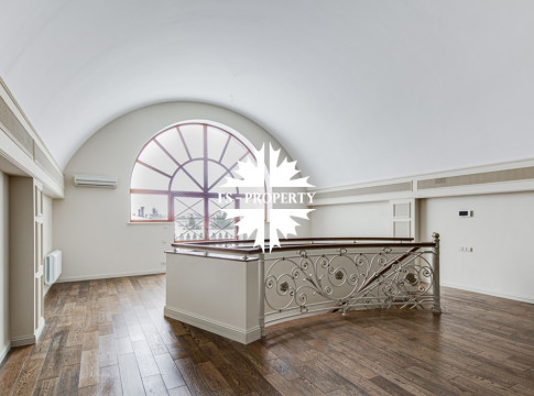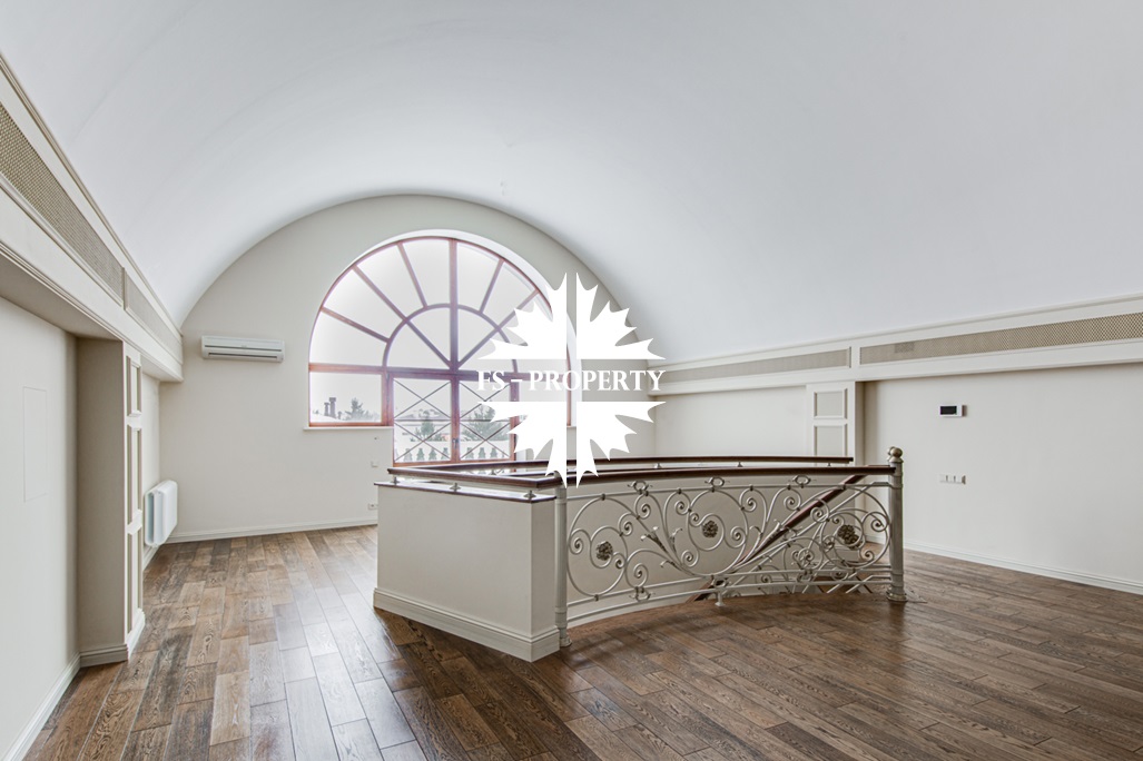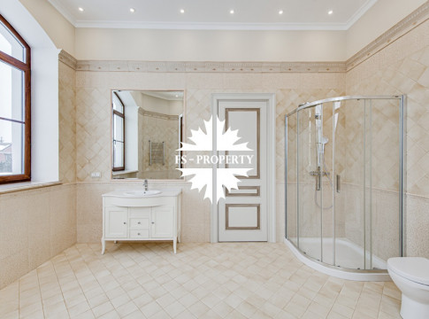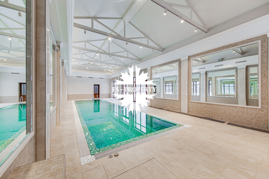 Особняк 1 070 кв.м. в классическом стиле с отделкой в благородных тонах. В доме 5 спален, гостиная с каминной зоной, три просторных балкона, зимний сад, бассейн, помещения для сауны и тренажерного зала.