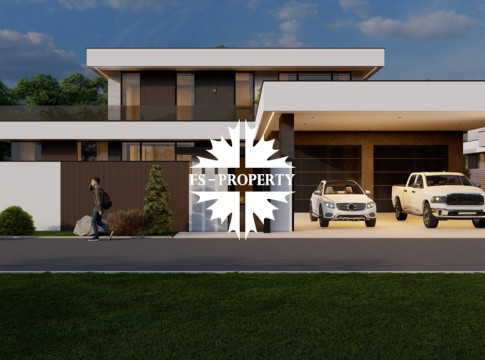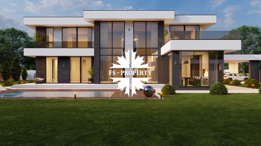 Двухэтажная вилла в стиле «Минимализм» на участке площадью 21,3 соток. При строительстве использованы дорогие натуральные материалы.