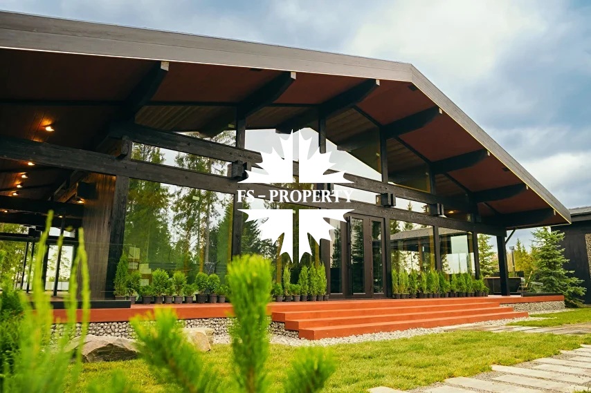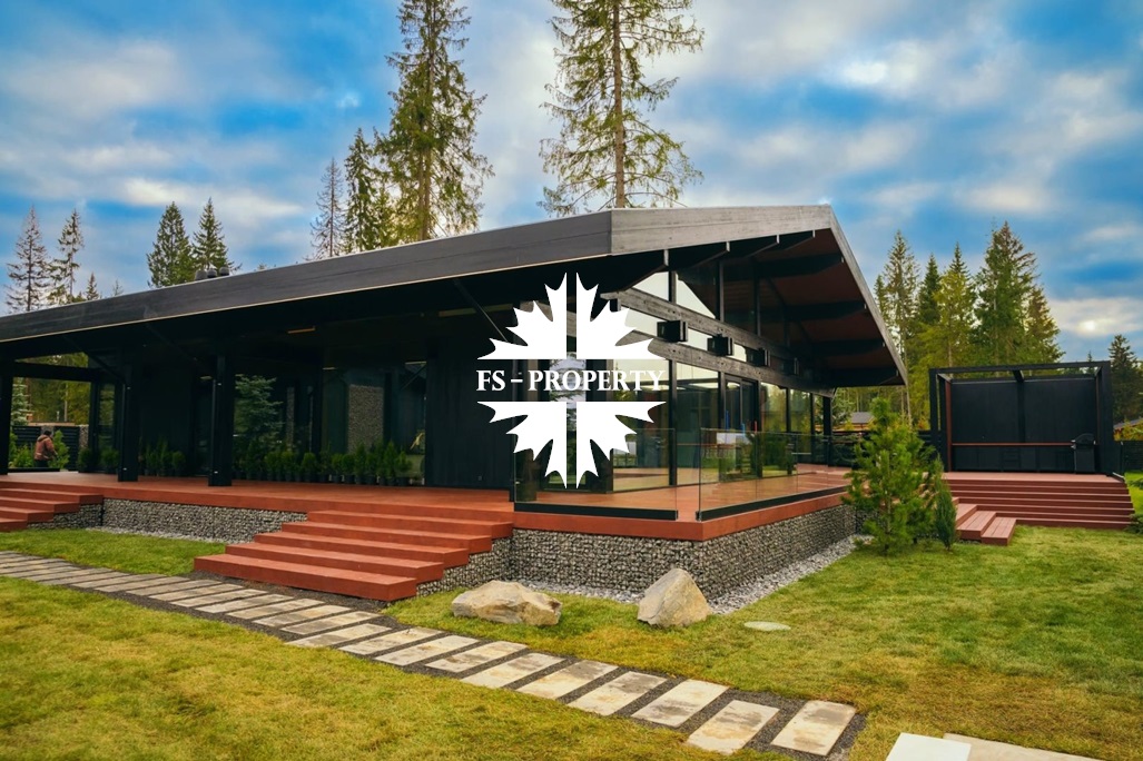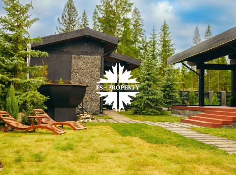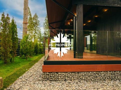 ГОТОВАЯ КОЛЛЕКЦИОННАЯ ПРЕМИУМ ВИЛЛА LERMONTOV В СТИЛЕ ШАЛЕ ФАХВЕРК С ВЕКОВЫМИ ЕЛЯМИ И ЛИЧНОЙ АКВАТОРИЕЙ В ХВОЙНОМ РЕЛИКТОВОМ ЛЕСУ.