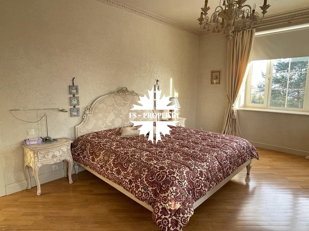 Великолепный ландшафтный дизайн. Высажены многолетние растения с красивыми цветами, декоративные кустарники (рододендроны, лаванда, розы, гортензии, магнолия, сакура, яблоня и т.п.). Система автополива. На участке гараж на 2 м/м с квартирой для персонала, зона барбекю.